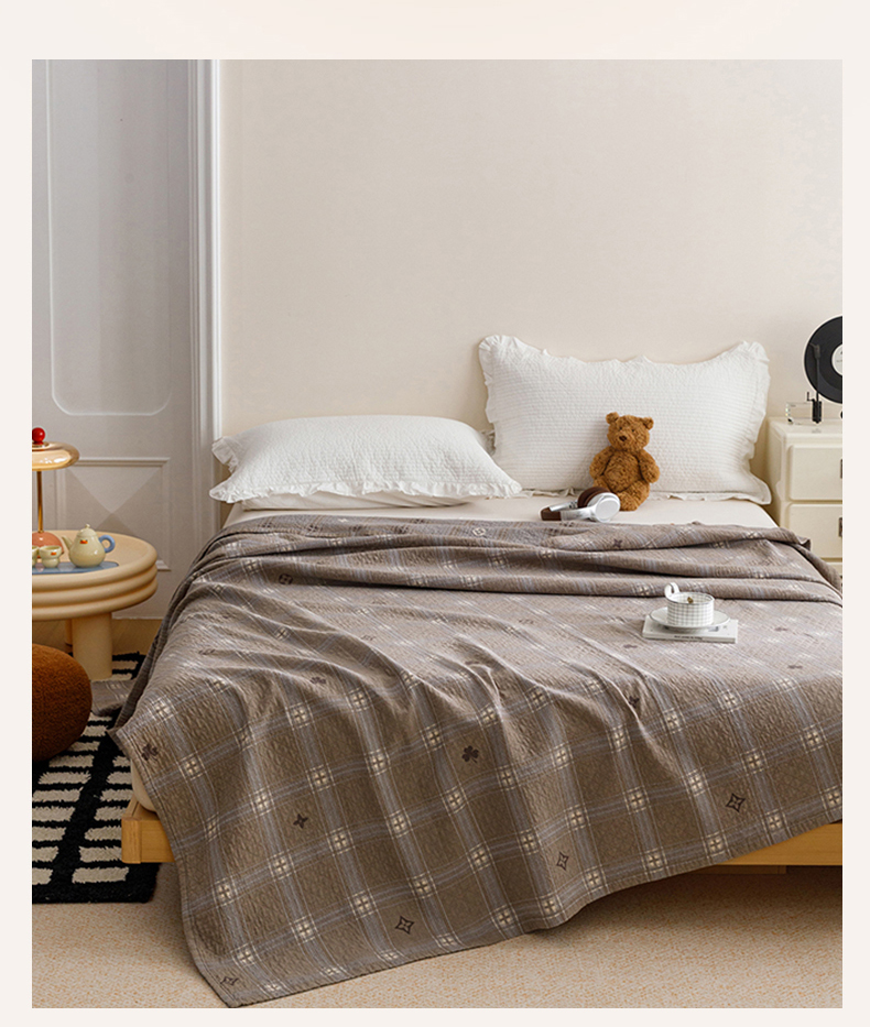 悦然毛巾被 2026春夏新款水洗色织提花全棉纯棉纱布毛巾被盖毯休闲夏被毛毯 棕格星芒