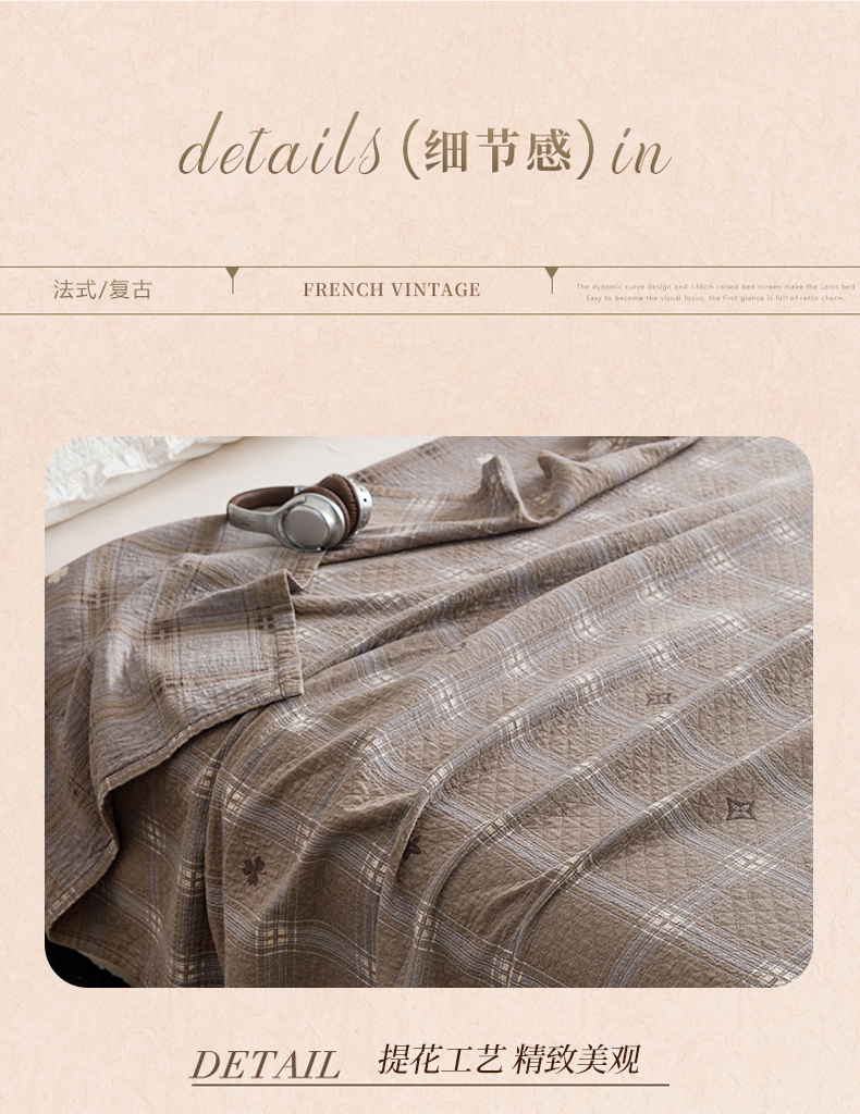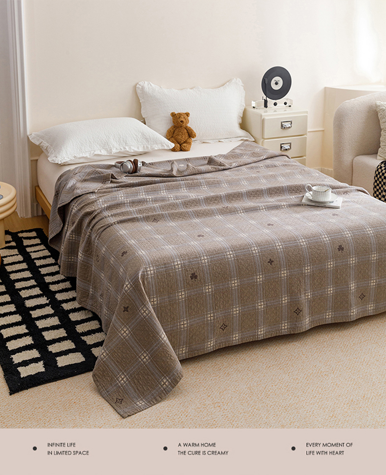 商品名称:悦然毛巾被 2026春夏新款水洗色织提花全棉纯棉纱布毛巾被盖毯休闲夏被毛毯 棕格星芒