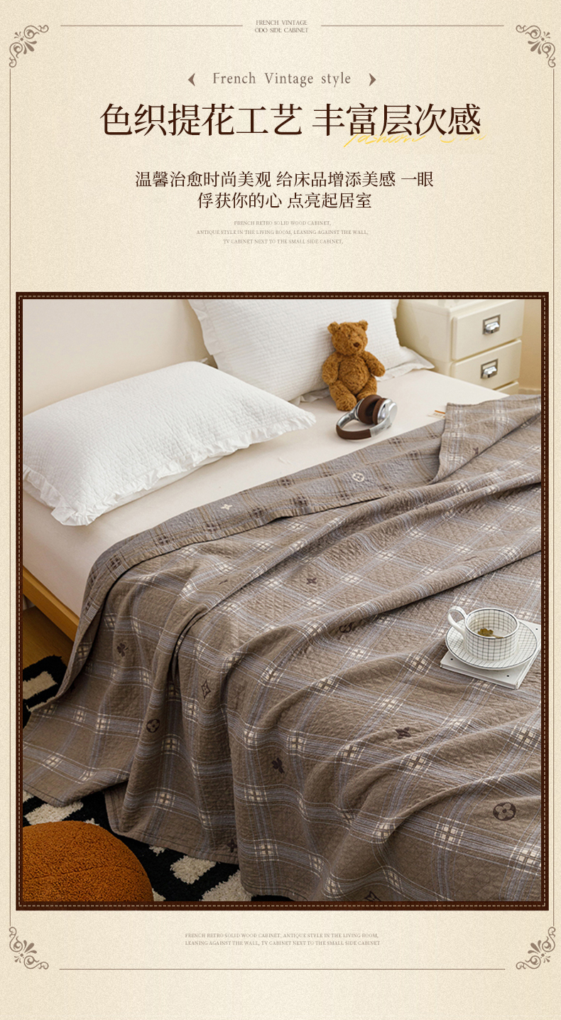(总)悦然毛巾被 2026新款外贸全棉三层纱布毛巾被盖毯,爱心拼布灰,爱心拼布咖,爱心拼布蓝,空灵羽灰,空灵羽咖,空灵羽蓝,迷宫格咖,迷宫灰,迷宫蓝,组合