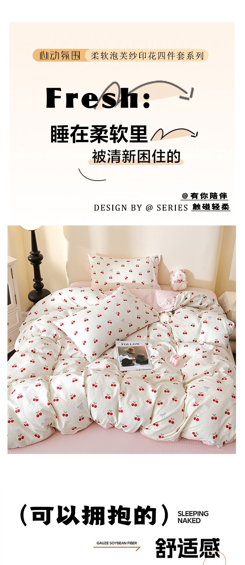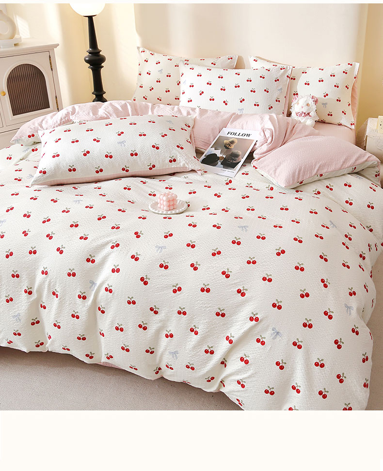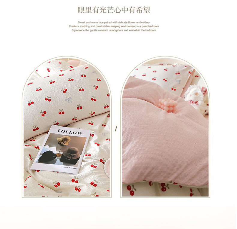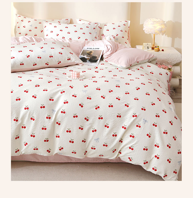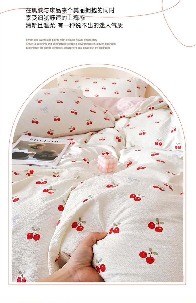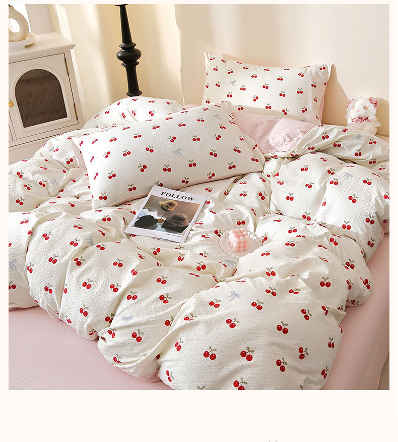 当前位置: 91家纺网 > 商品网购 > 床品套件 > 四件套 > 化纤活性四件套 > 北部居 2026新款柔软泡芙纱高克重印花四件套 甜甜心事