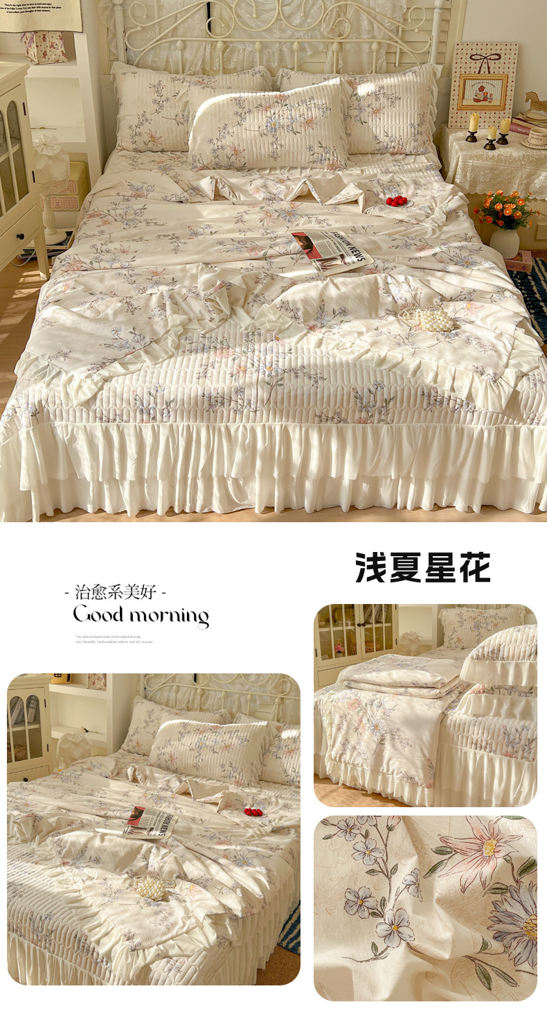 当前位置: 91家纺网 > 商品网购 > 床品套件 > 四件套 > 其它四件套 > 提花大世界 2026新款冰肤纱法式花边凉感夏被夏凉被空调被被套凉席三件套床盖夹棉四件套 浅夏星花