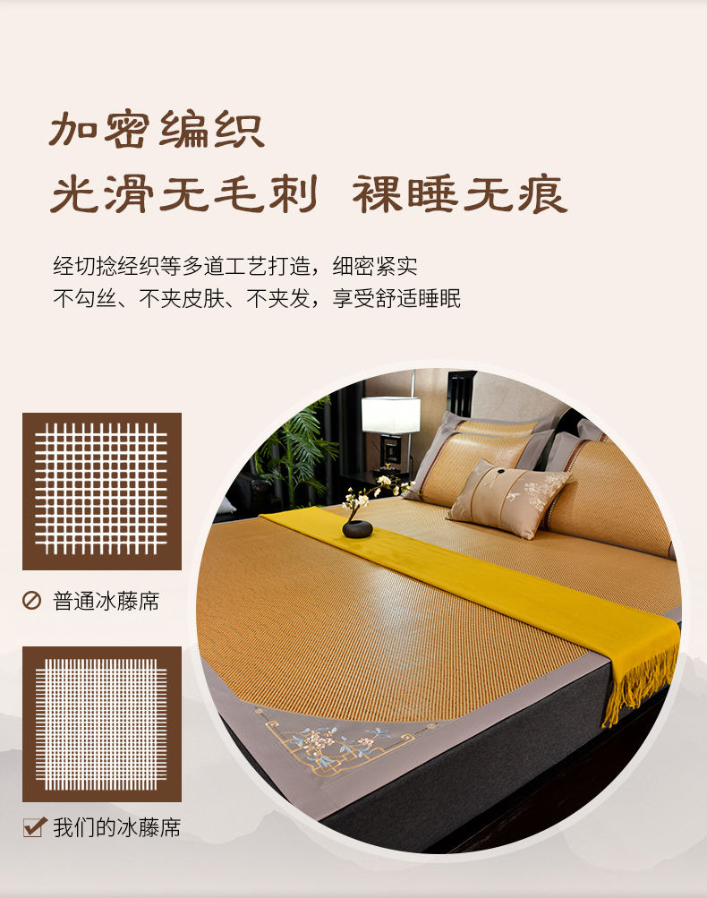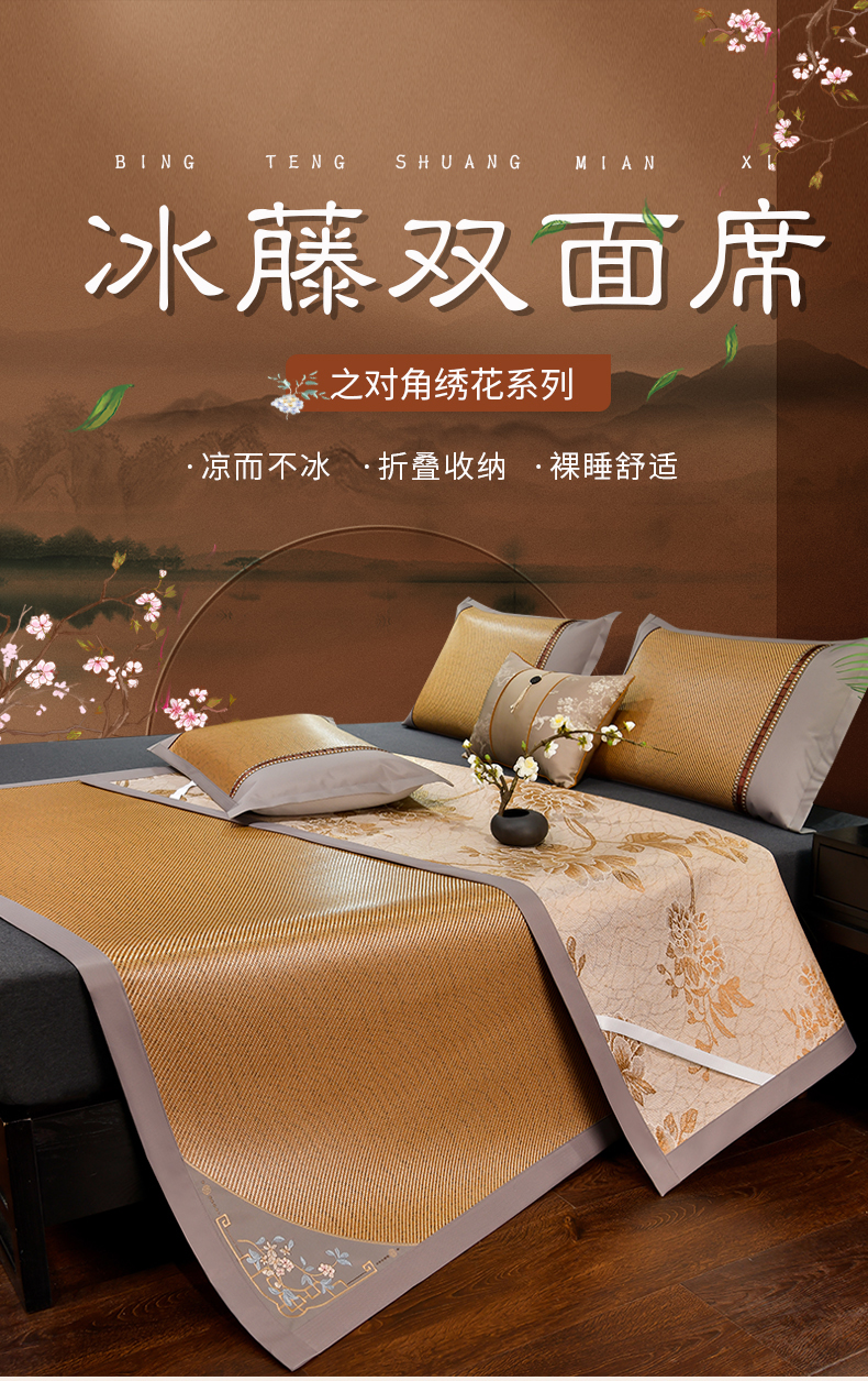 当前位置: 91家纺网 > 商品网购 > 床上用品 > 凉席 > 藤席 > 小牛席业 2026新款对角绣冰藤双面席凉席席子 对角绣花-冰藤双面席深咖
