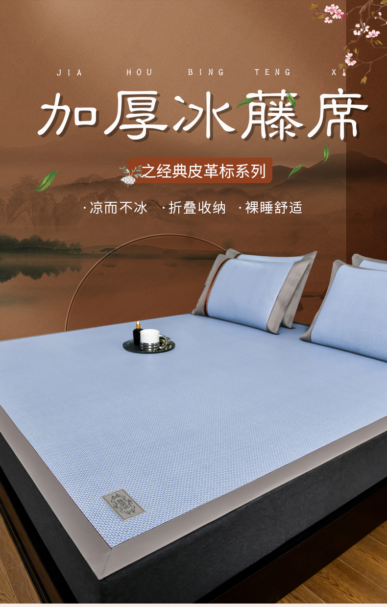 当前位置: 91家纺网 > 商品网购 > 床上用品 > 凉席 > 藤席 > 小牛席业 2026新款加厚古藤席经典皮革标凉席席子 加厚古藤席-经典皮革标(浅蓝)