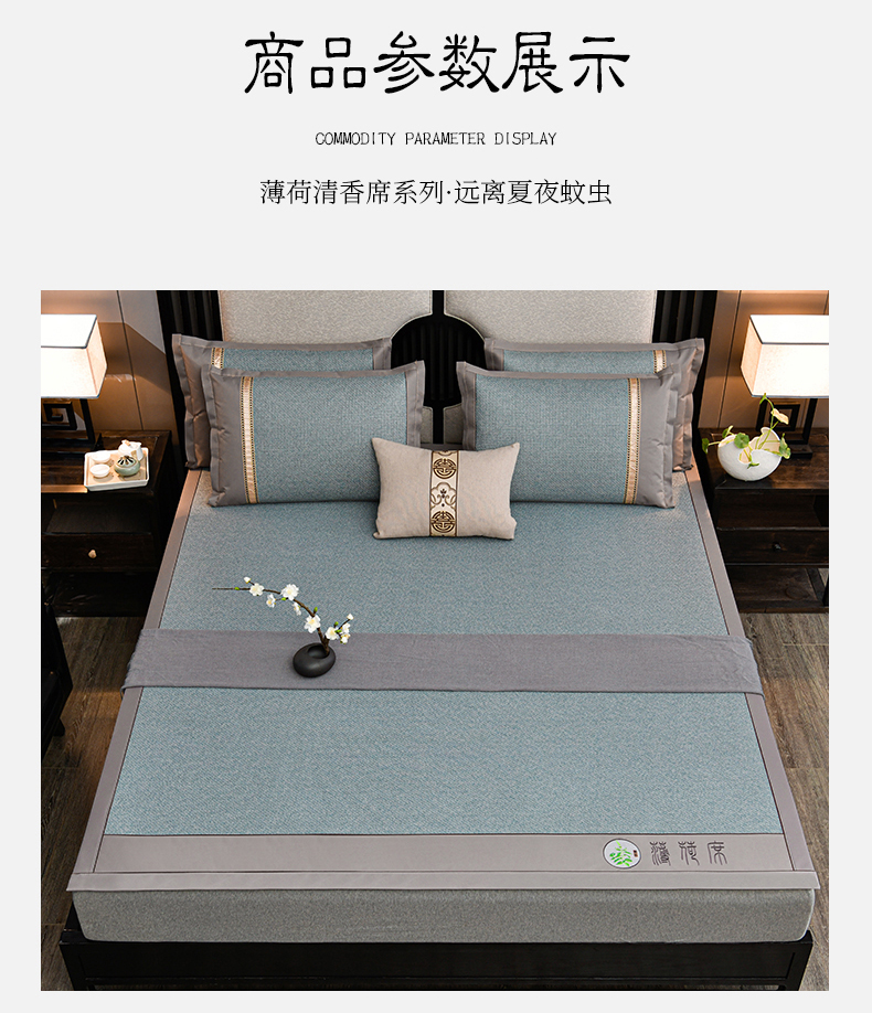商品名称:小牛席业 2026新款纯藤席面经典款薄荷清香双面席凉席席子 薄荷清香席-冰蓝