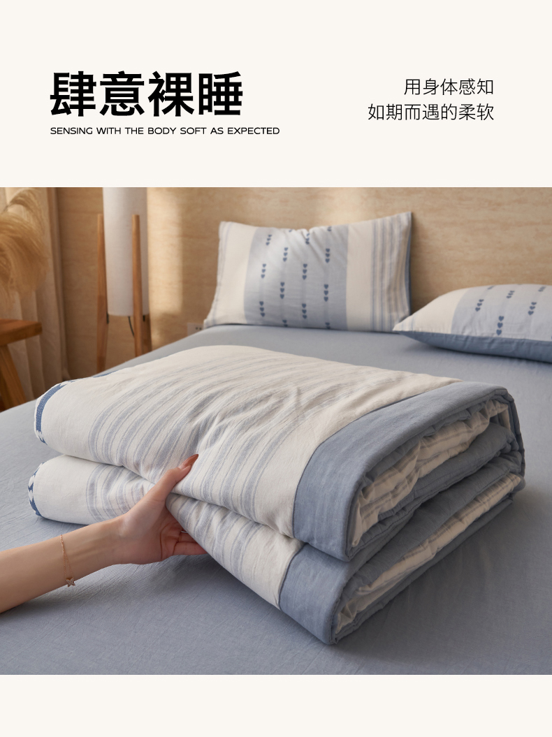 (总)简如 2026新款A类全棉双层纱皱皱纱夏被四件套-简系列,本白,海盐蓝,奶茶粉,奶咖,奶昔白,浅粉,雾霾蓝
