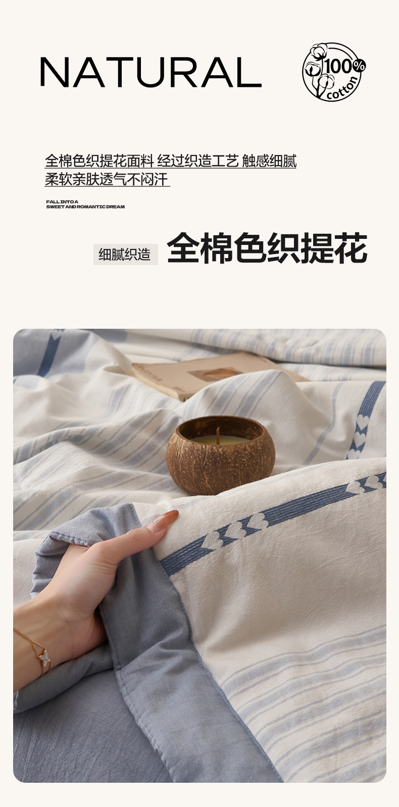 (总)简如 2026新款全棉色织提花里外全棉夏凉被四件套,爱心-兰,柏锦-蓝,柏锦-玉,柏锦-紫,爱心-粉