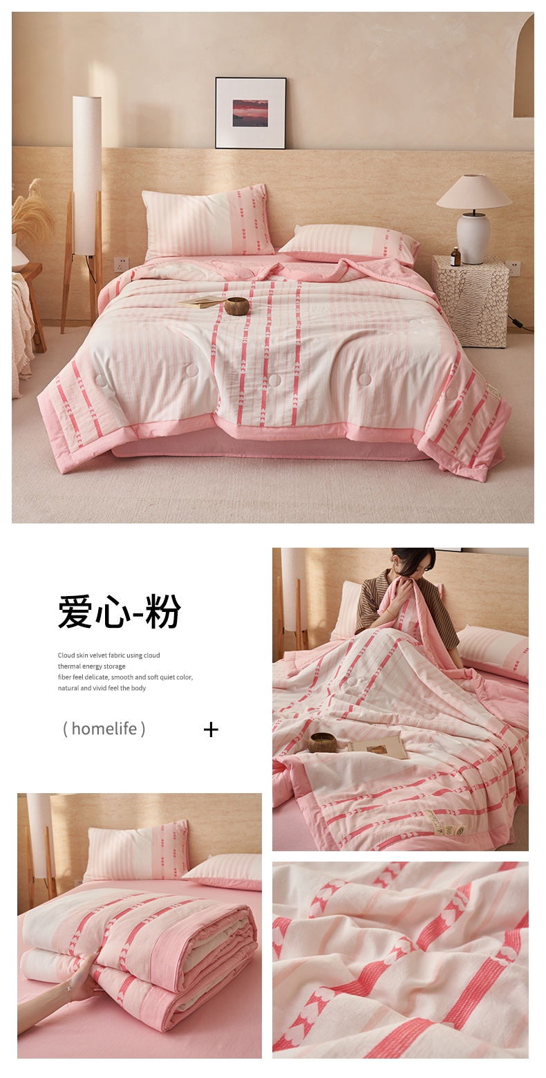• 91家纺网 家纺一手货源 找家纺 简如 2026新款全棉色织提花里外全棉夏凉被四件套 爱心-兰