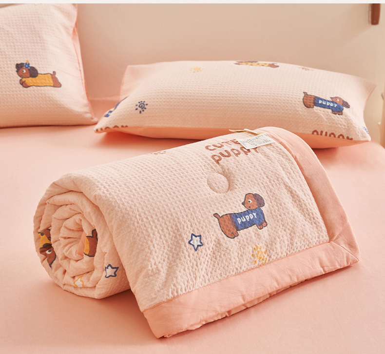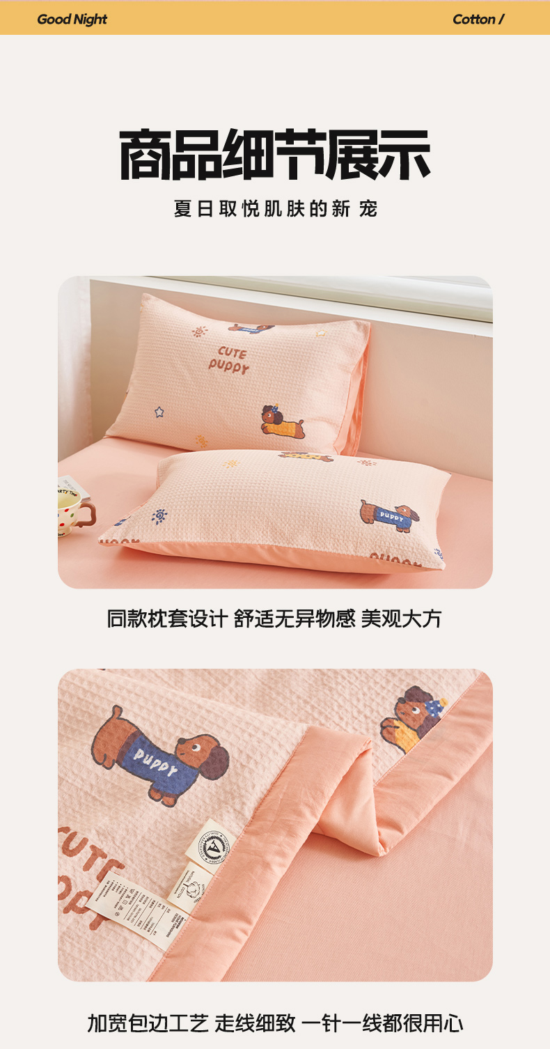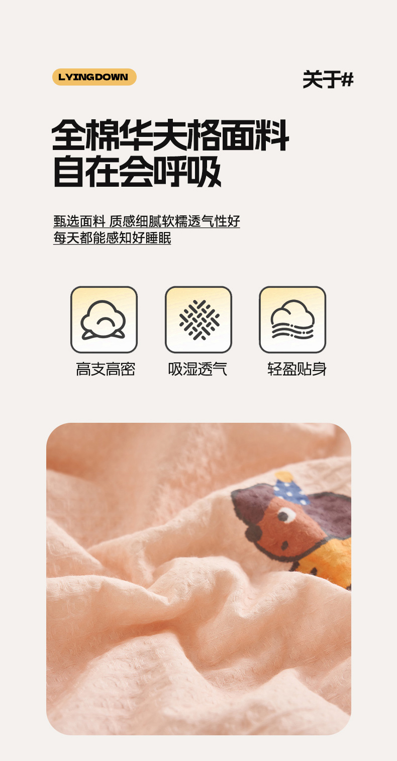 • 91家纺网 家纺一手货源 找家纺 简如 2026新款里外全棉华夫格夏凉被四件套 布丁可乐