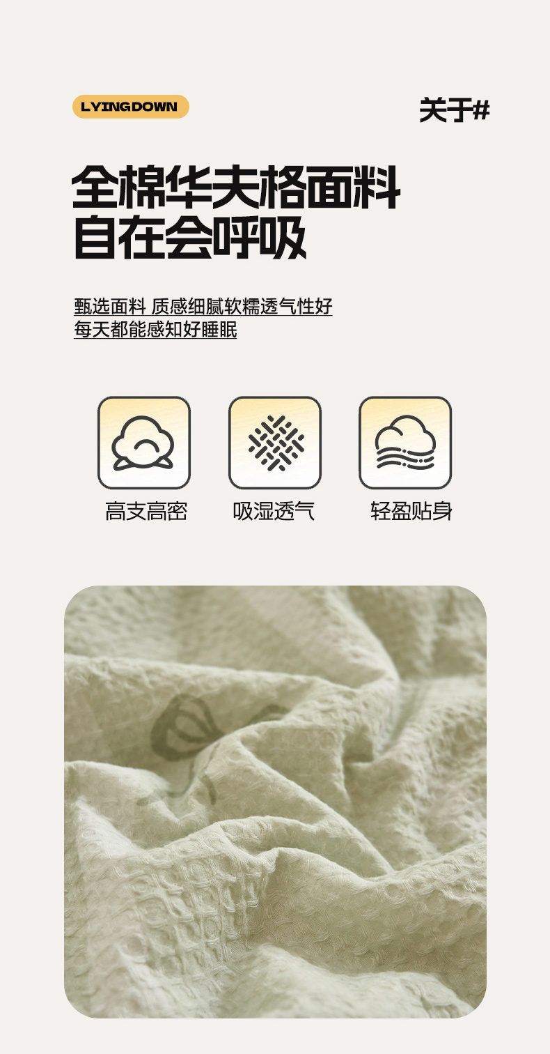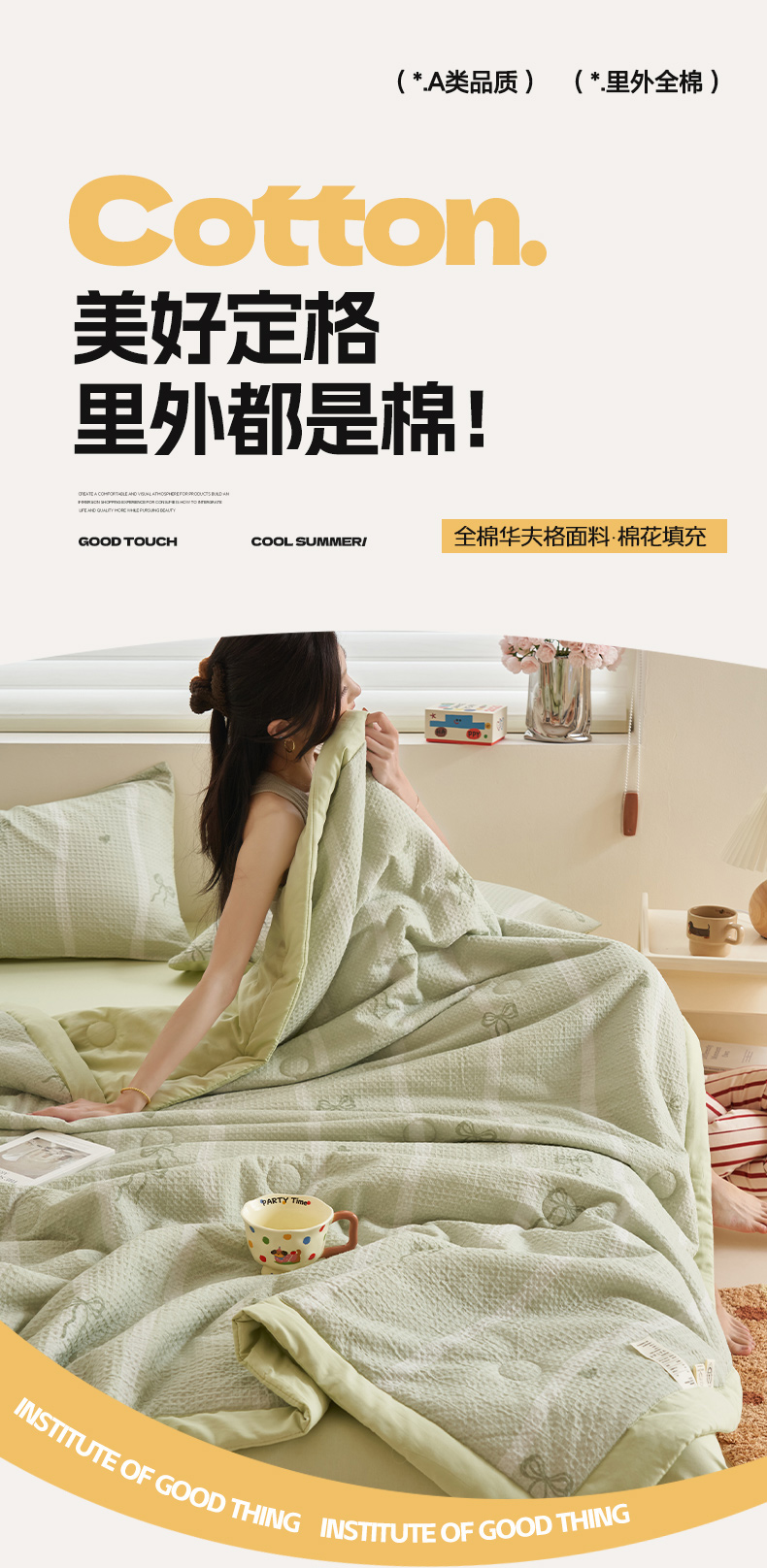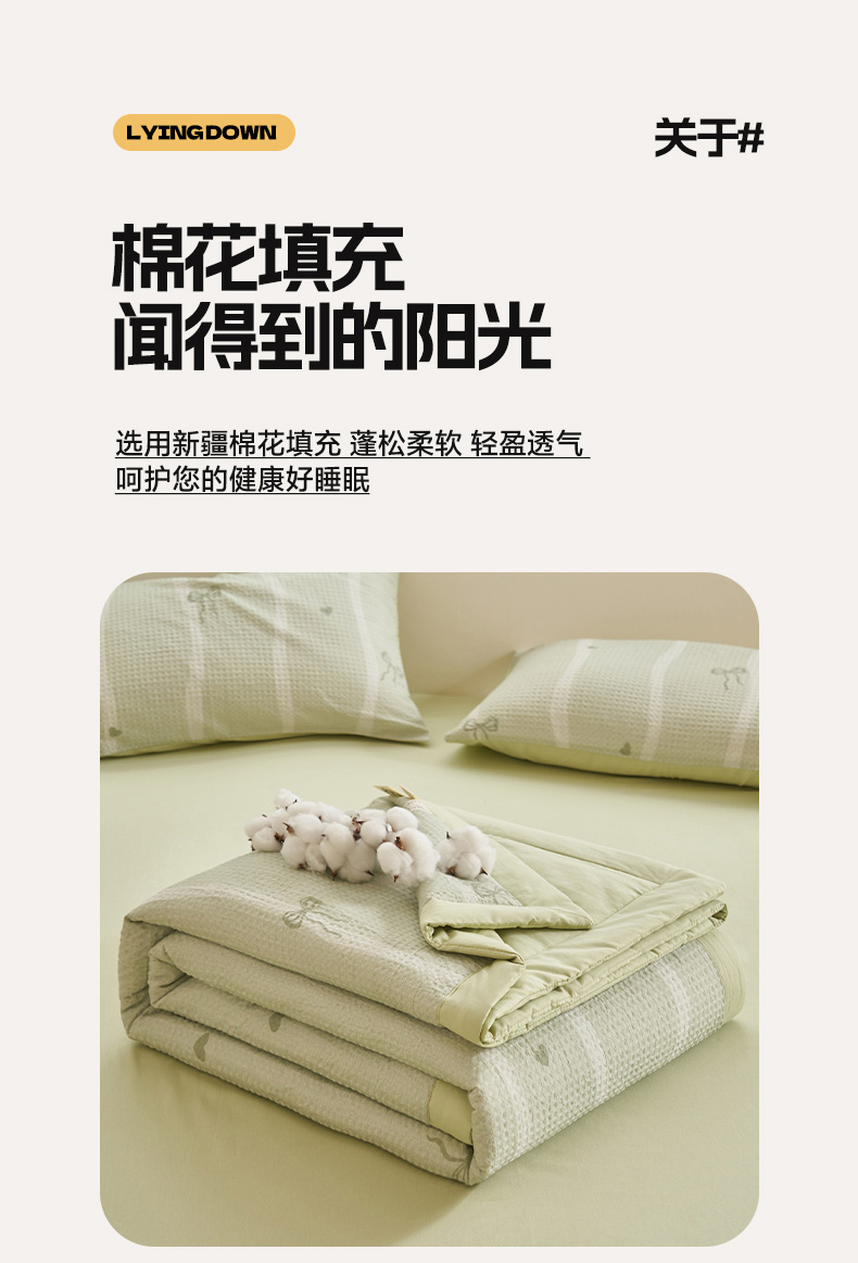 当前位置: 91家纺网 > 商品网购 > 被子 > 夏被 > 简如 2026新款里外全棉华夫格夏凉被四件套 茹梦-绿