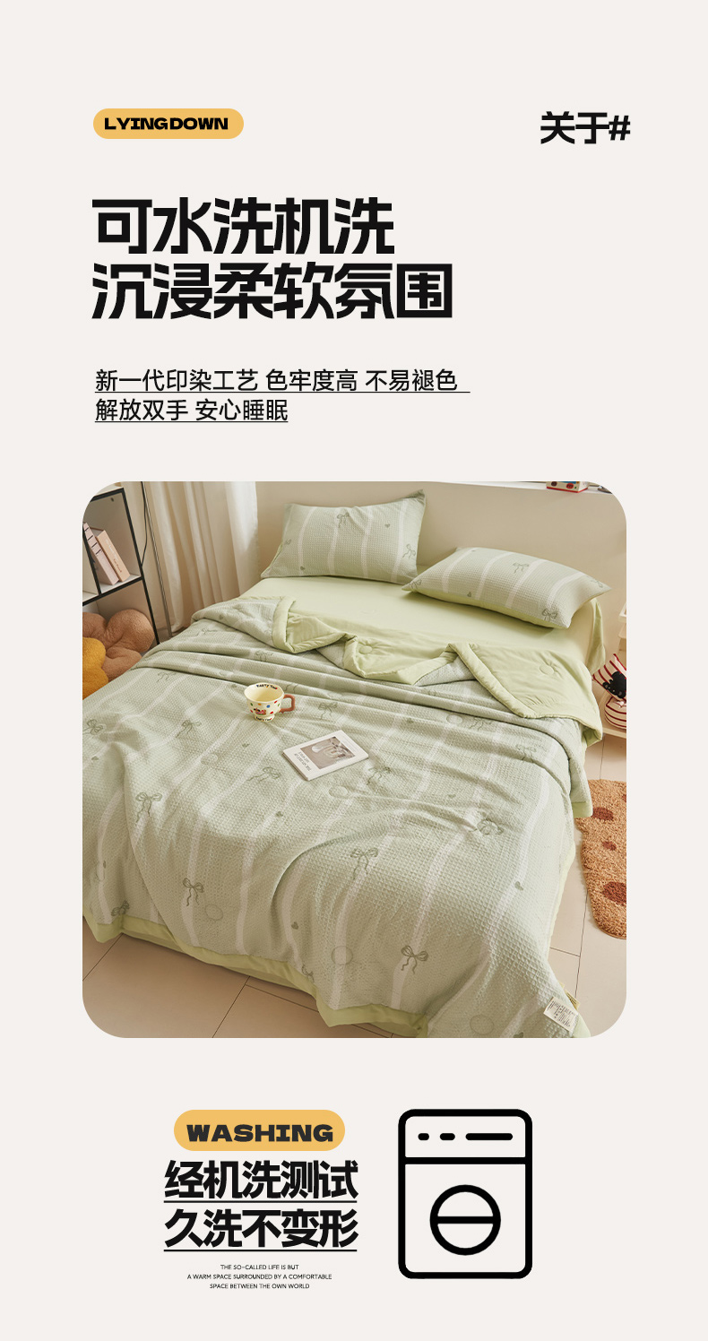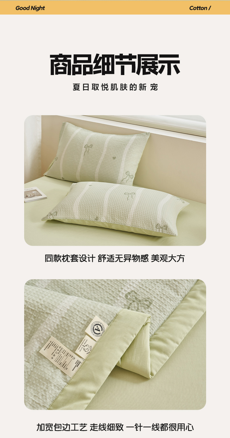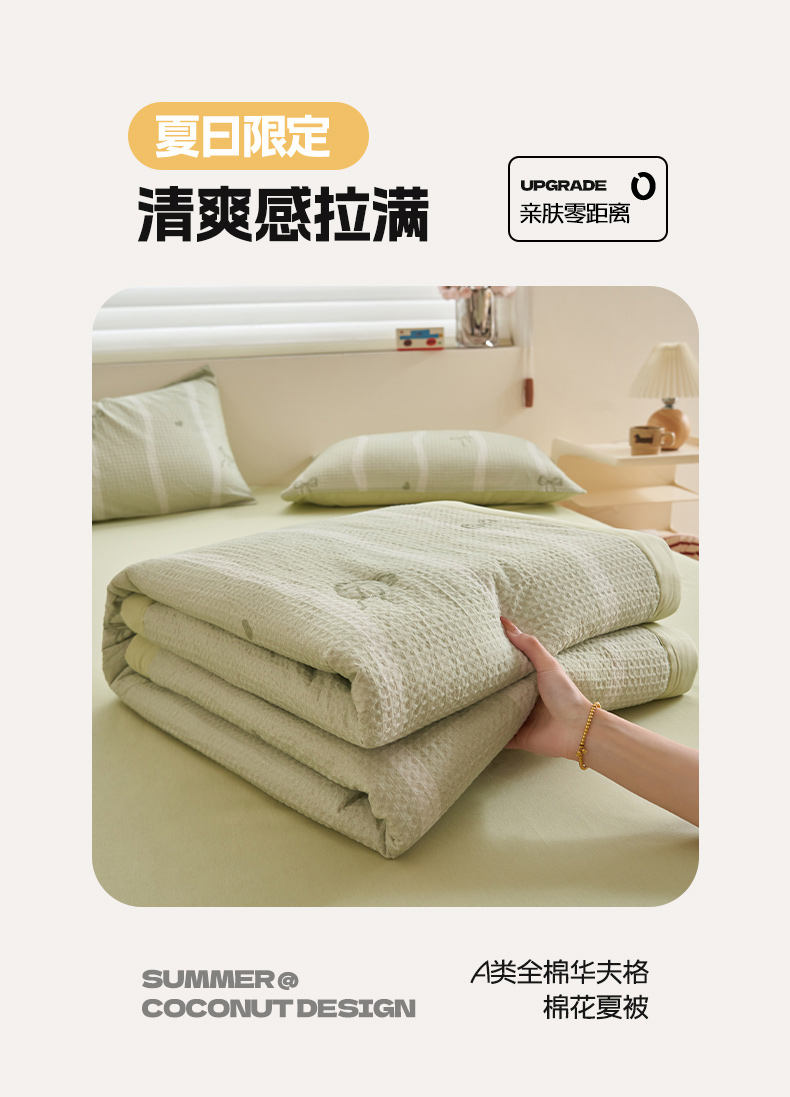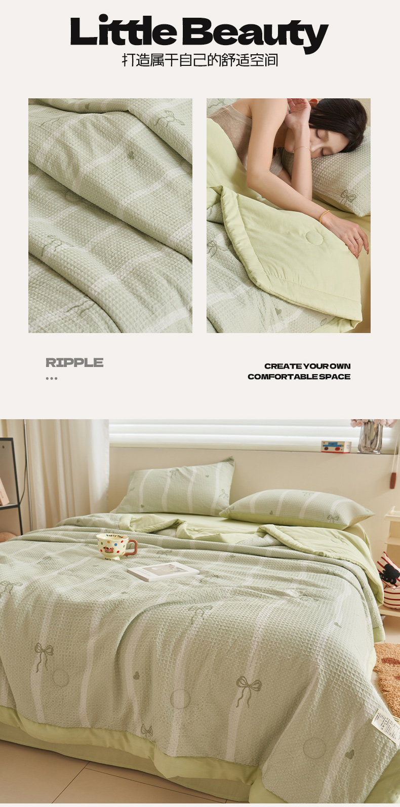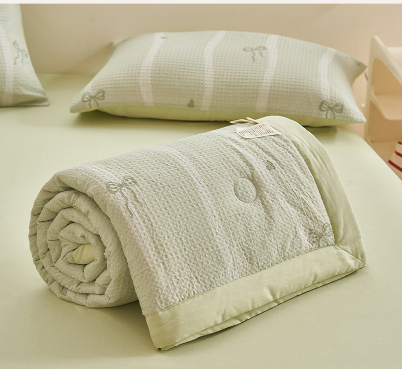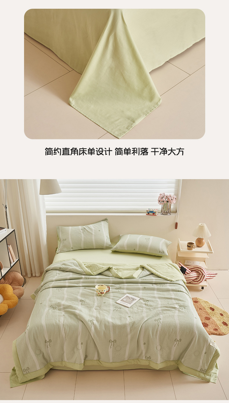 • 91家纺网 家纺一手货源 找家纺 简如 2026新款里外全棉华夫格夏凉被四件套 茹梦-绿