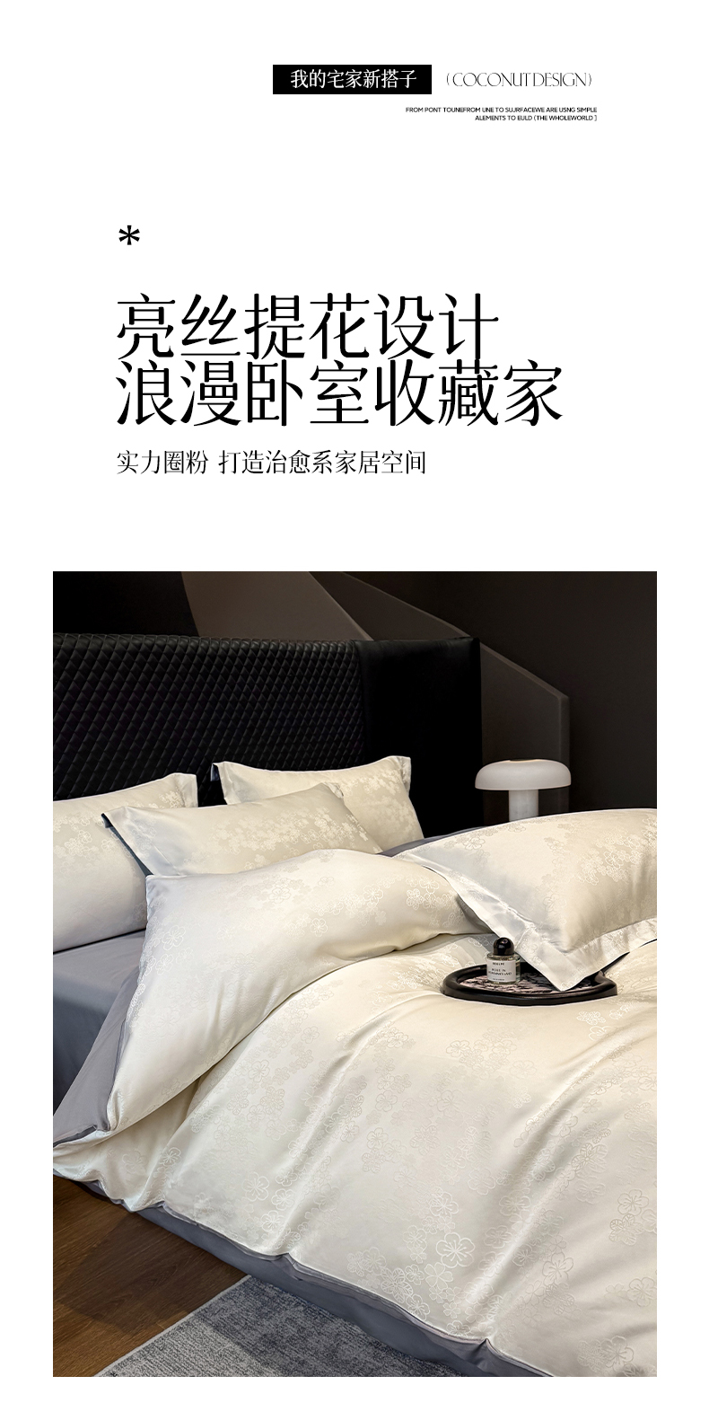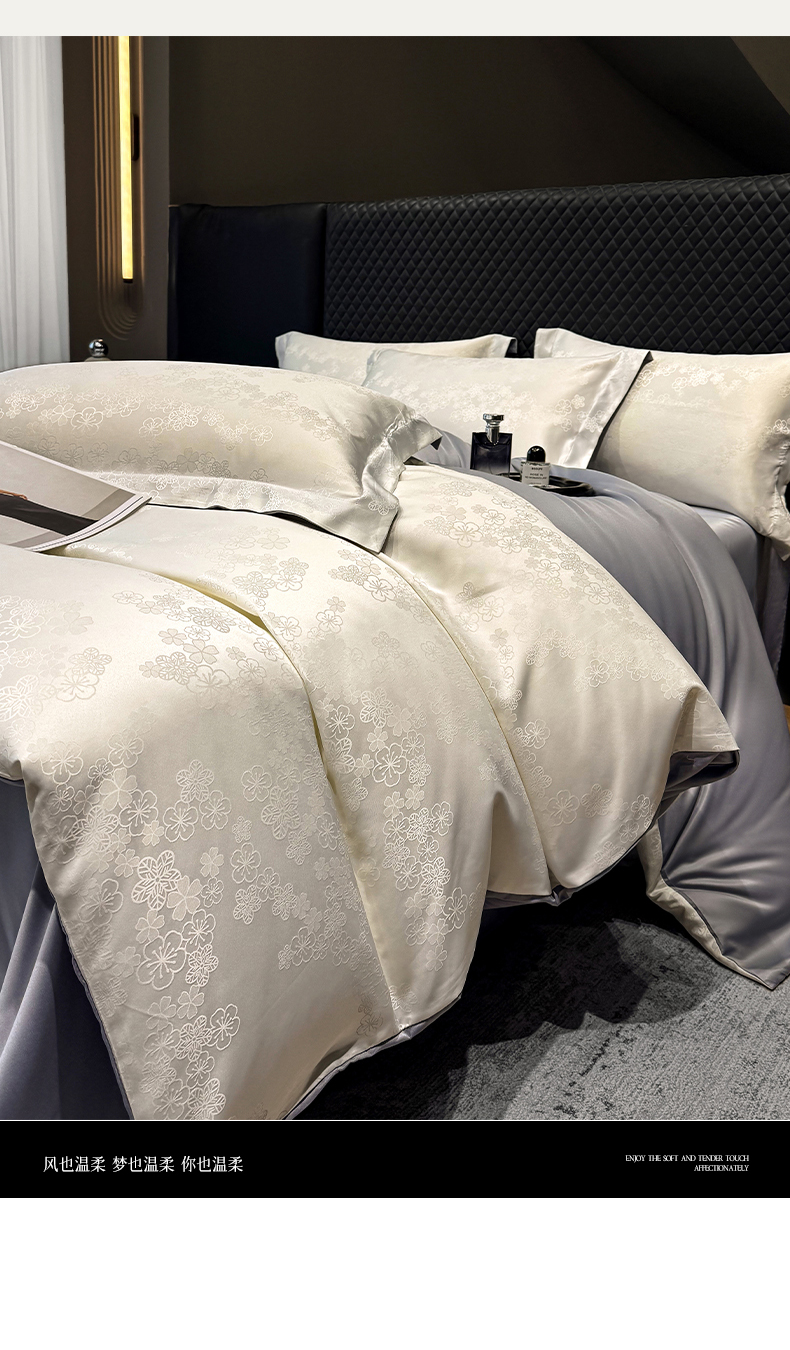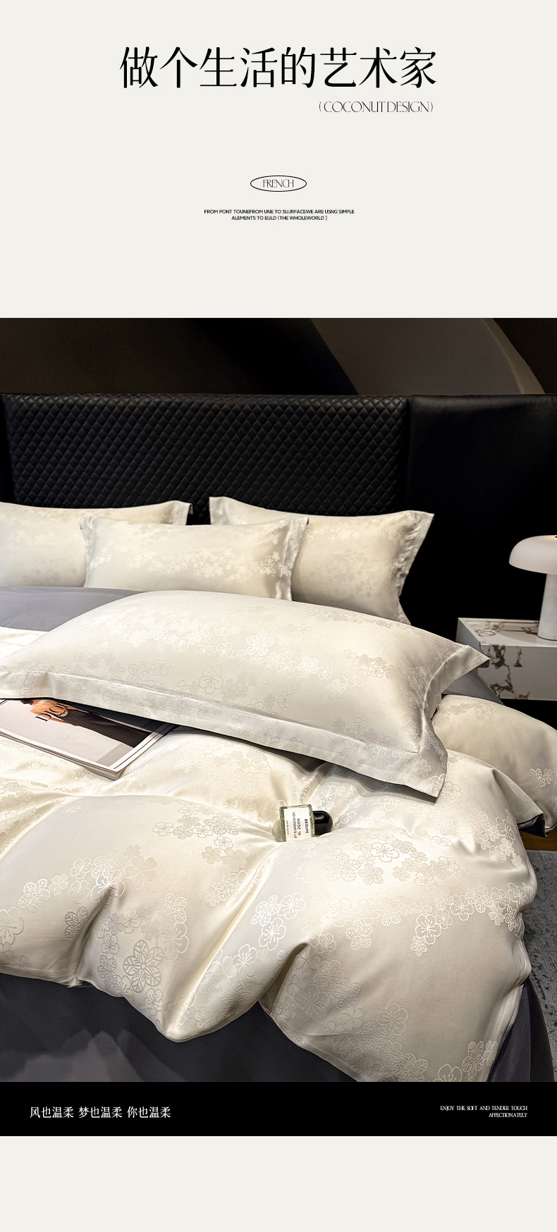 当前位置: 91家纺网 > 商品网购 > 床品套件 > 四件套 > 化纤普通四件套 > 奥汀洛家纺 2026春夏新款水洗冰丝亮丝提花四件套 蔷薇-白