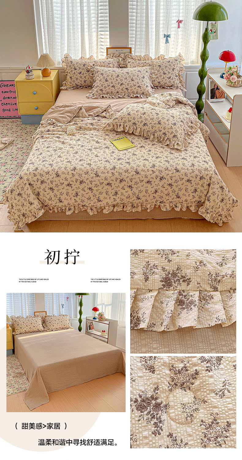 蓝极人 2026新款泡芙棉花边夏被四件套 XB若梦
