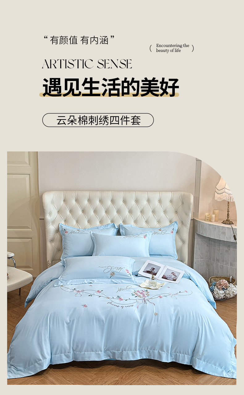 当前位置: 91家纺网 > 商品网购 > 床品套件 > 四件套 > 其它四件套 > (总)经年 2026春夏新款云朵棉刺绣四件套-约定