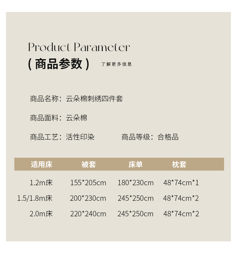 【床单款】1.8四件套-被套200x230 | ¥75.00 |
