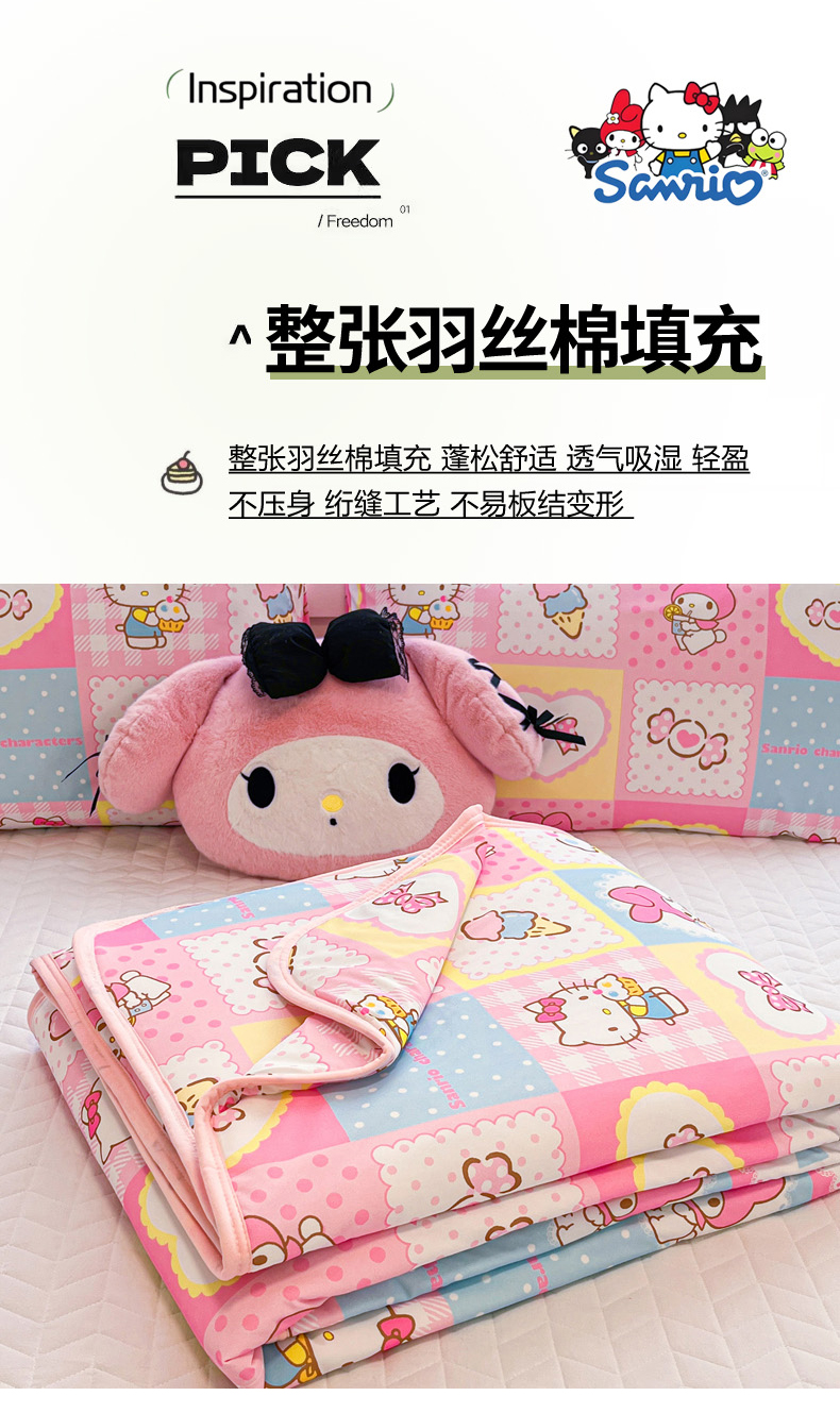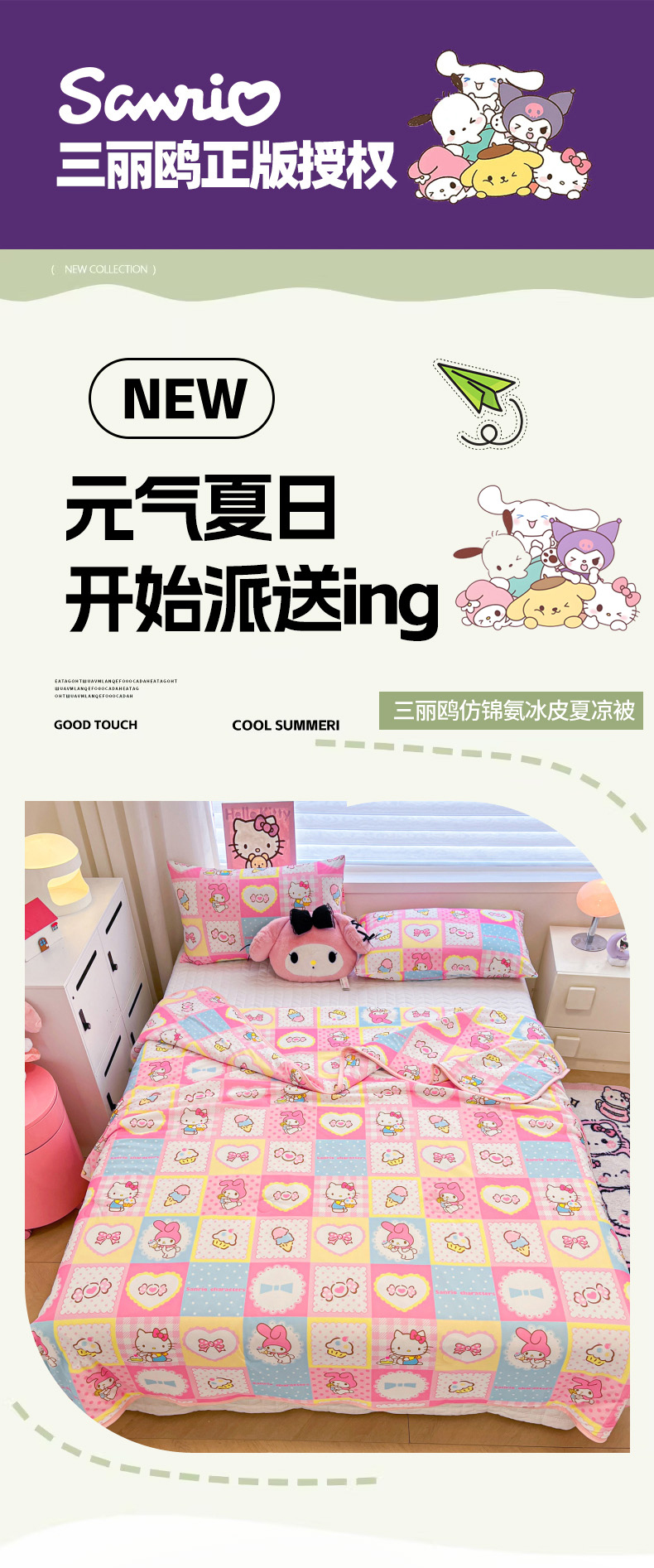 (总)暮思家居 2026新款正版授权A类大版数码印花三丽鸥可组合仿锦氨夏被夏凉被空调被,草莓KT,甜筒KT,豹纹KT猫,草莓美乐蒂,蛋糕美乐蒂,格子KT,公主美乐蒂,蝴蝶结KT,花园美乐蒂,开心玉桂狗,快乐玉桂狗,美美KT,梦幻KT,梦想库洛米,奶油KT,甜蜜库洛米,条纹美乐蒂,晚安玉桂狗,相框美乐蒂,香水KT,小兔美乐蒂,小熊玉桂狗,幸福KT,幸福大耳狗,炫彩库洛米,云朵玉桂狗