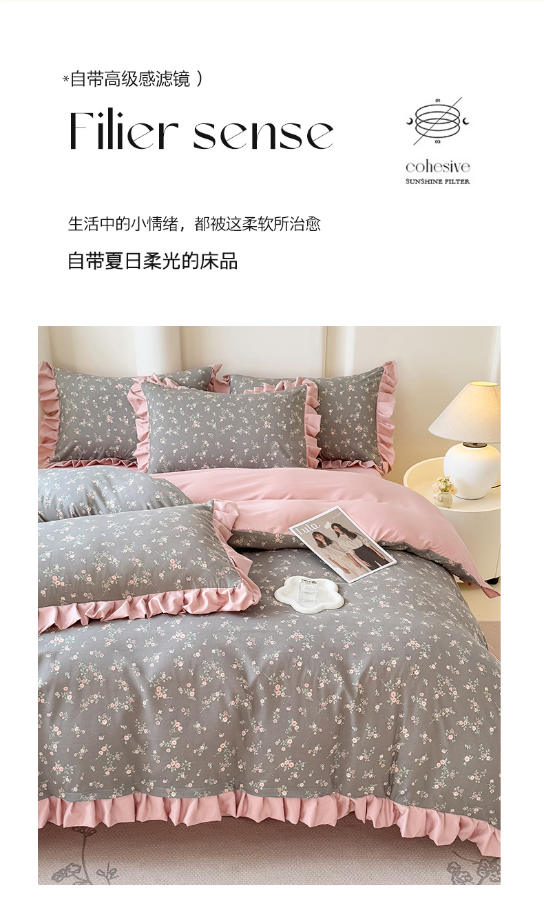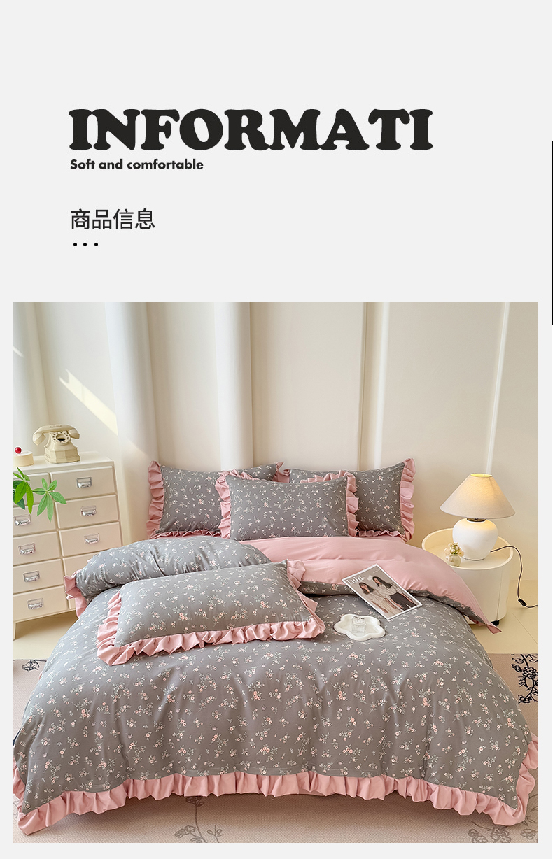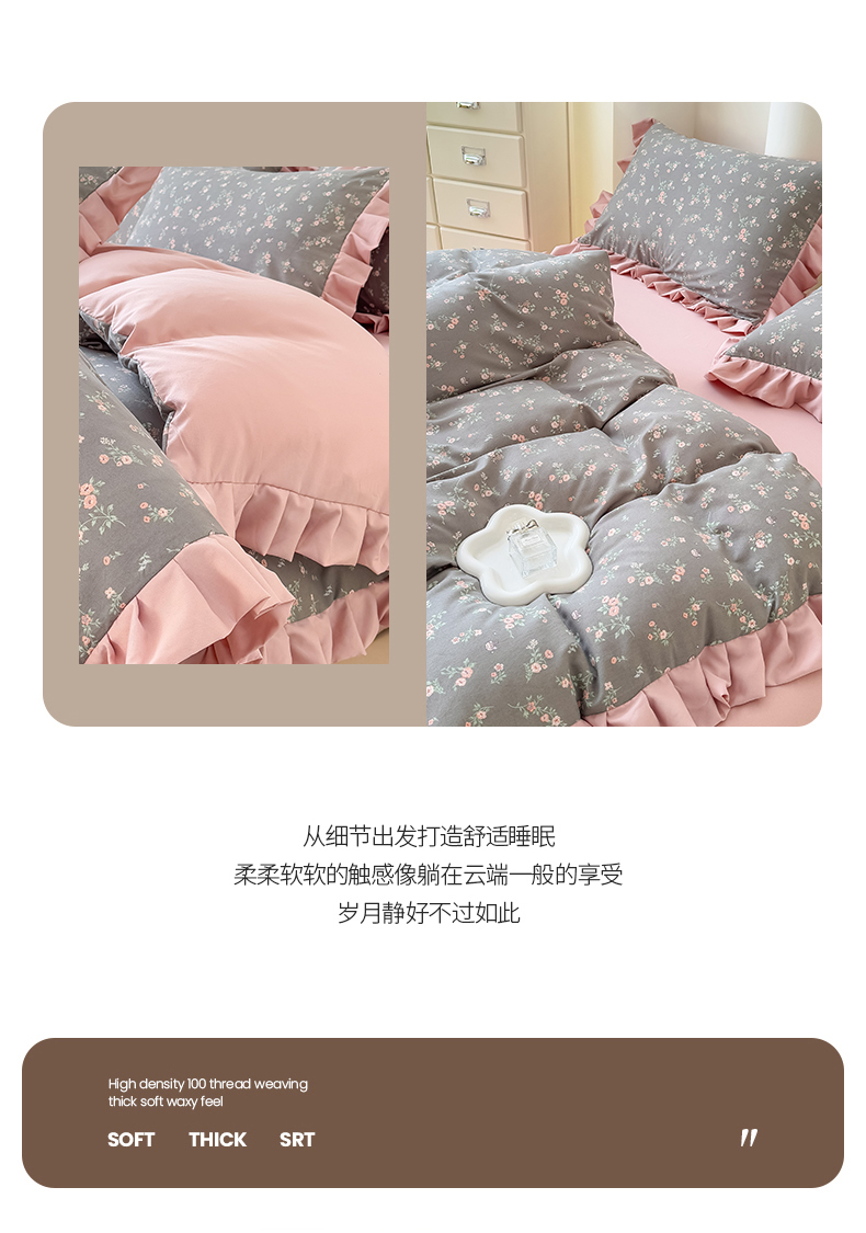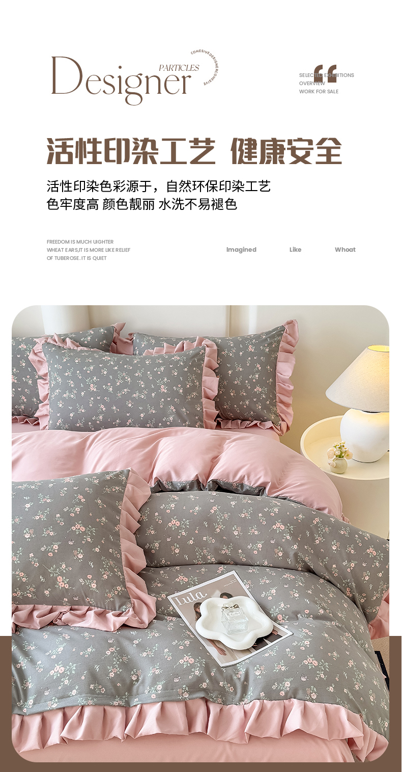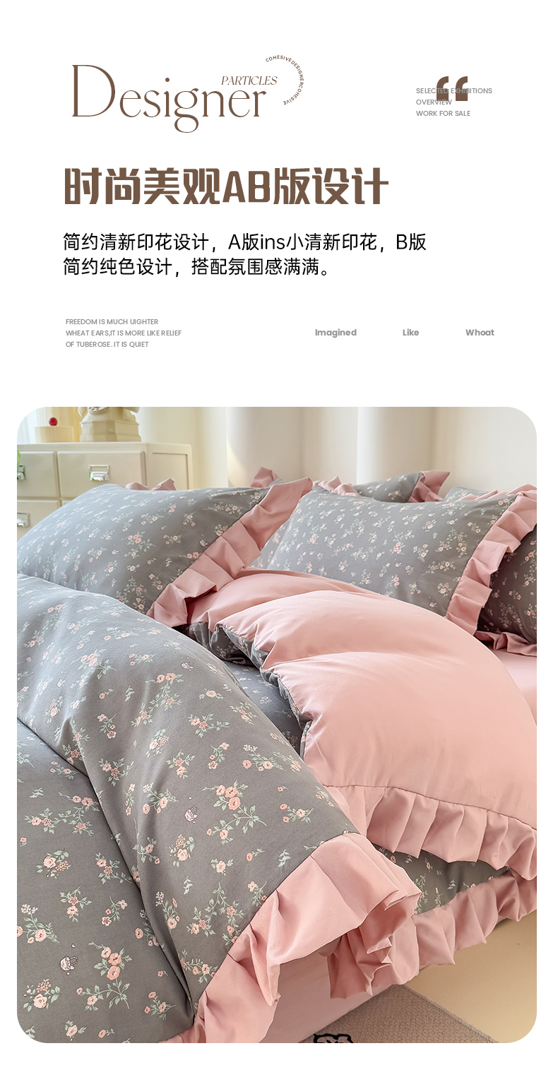 当前位置: 91家纺网 > 商品网购 > 床品套件 > 四件套 > 其它四件套 > 晚爱家纺(原晚安家居) 2026韩版花边四件套 有氧针织双层纱天竺棉超柔小清新四件套 妮可