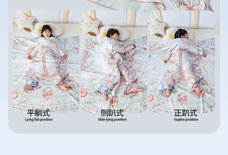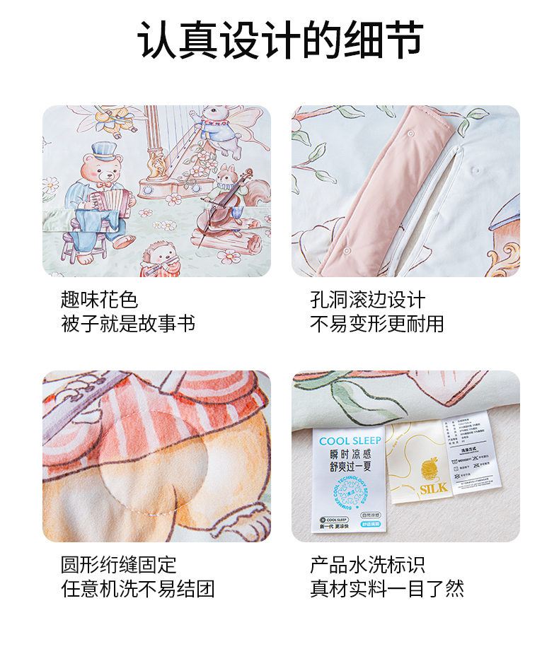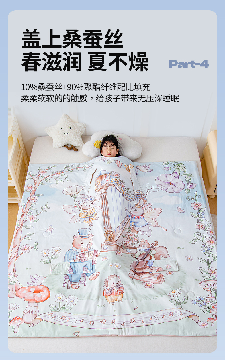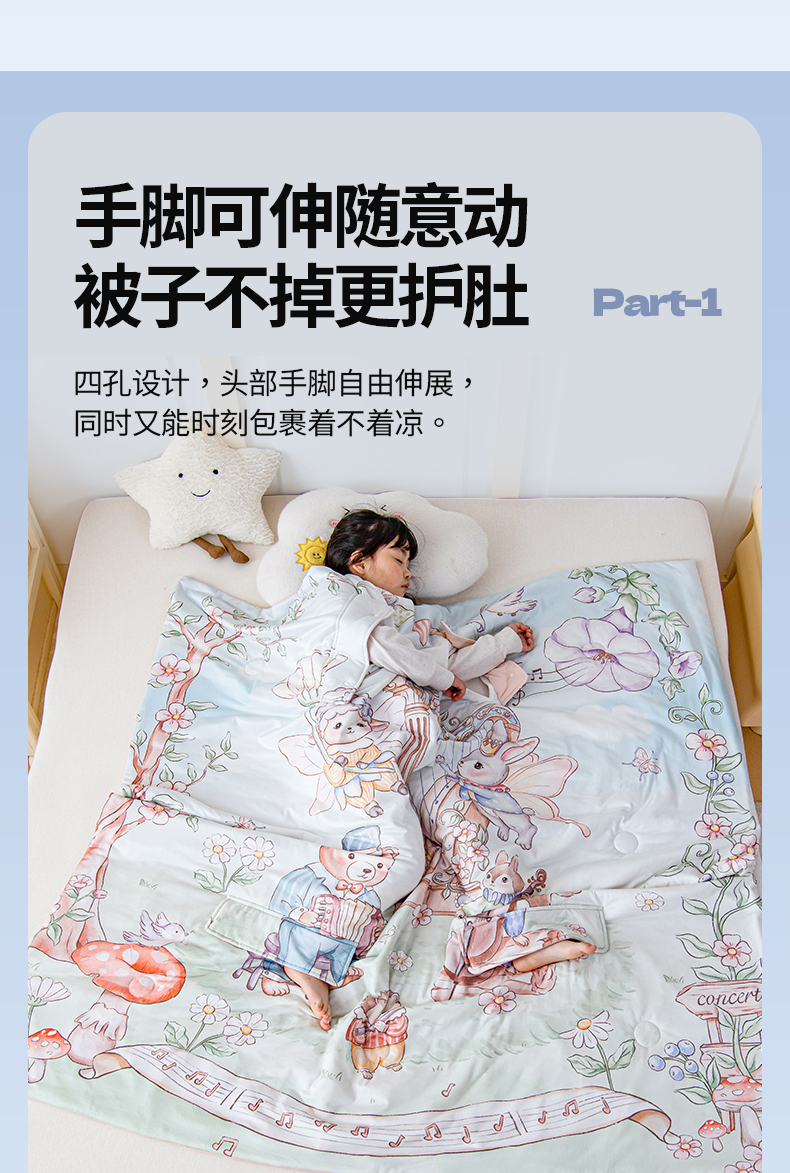 商品名称:吉咪兔家纺 2026新款桑蚕丝护肚防踢睡袋多功能盖毯宝宝夏被拥抱被儿童夏被儿童防踢被 森林音乐