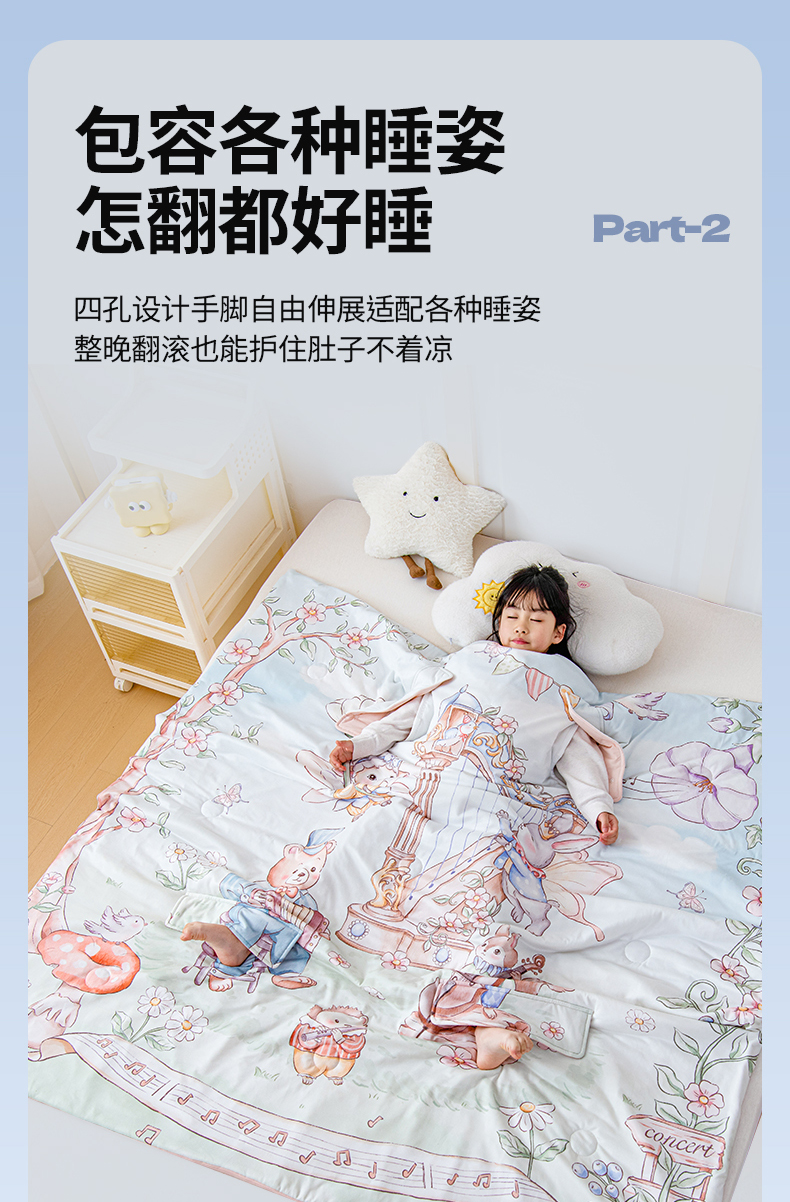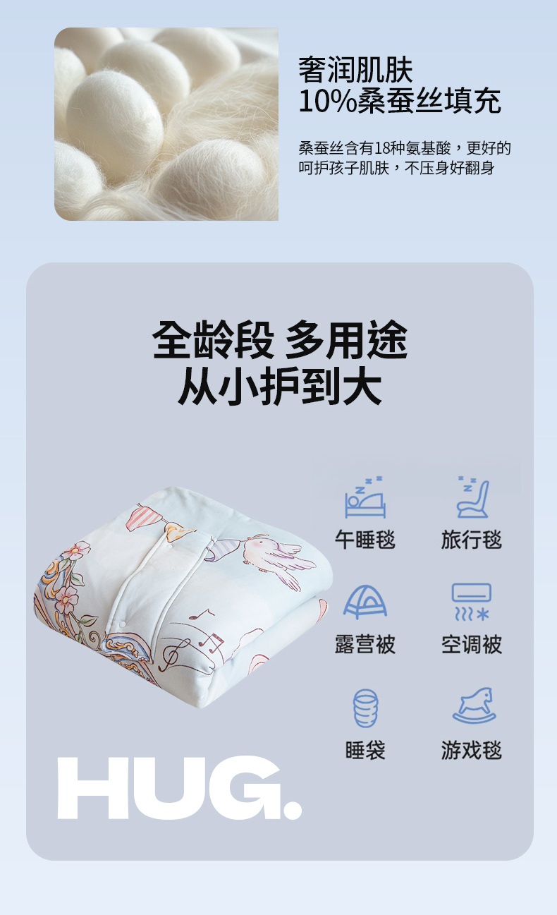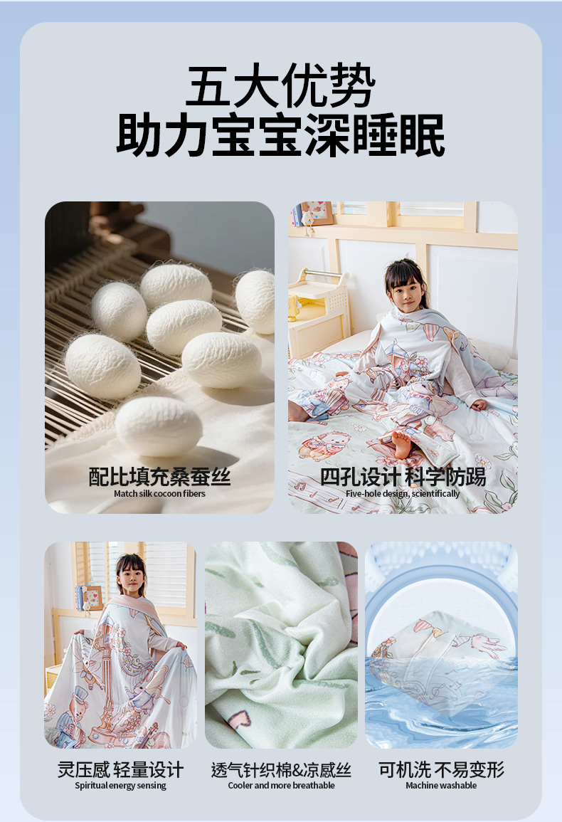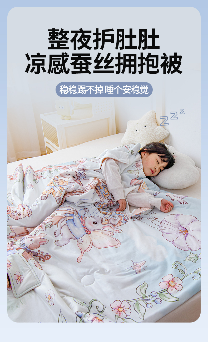 (总)吉咪兔家纺 2026新款桑蚕丝护肚防踢睡袋多功能盖毯宝宝夏被拥抱被儿童夏被儿童防踢被,飞行乐园,丰收果园,鲸鱼飞船,森林音乐,小王子
