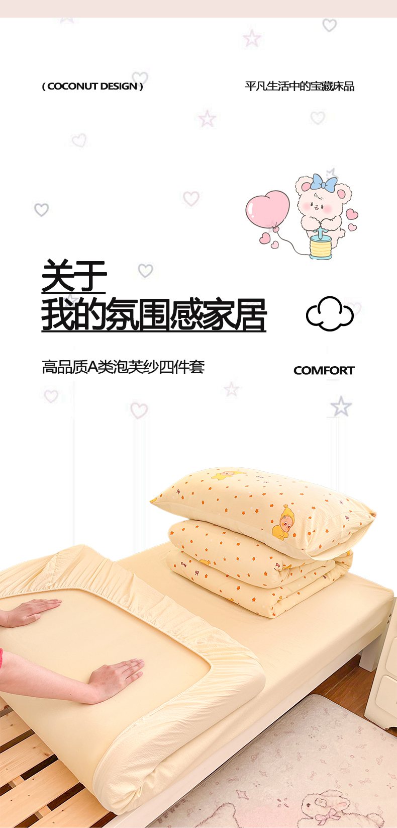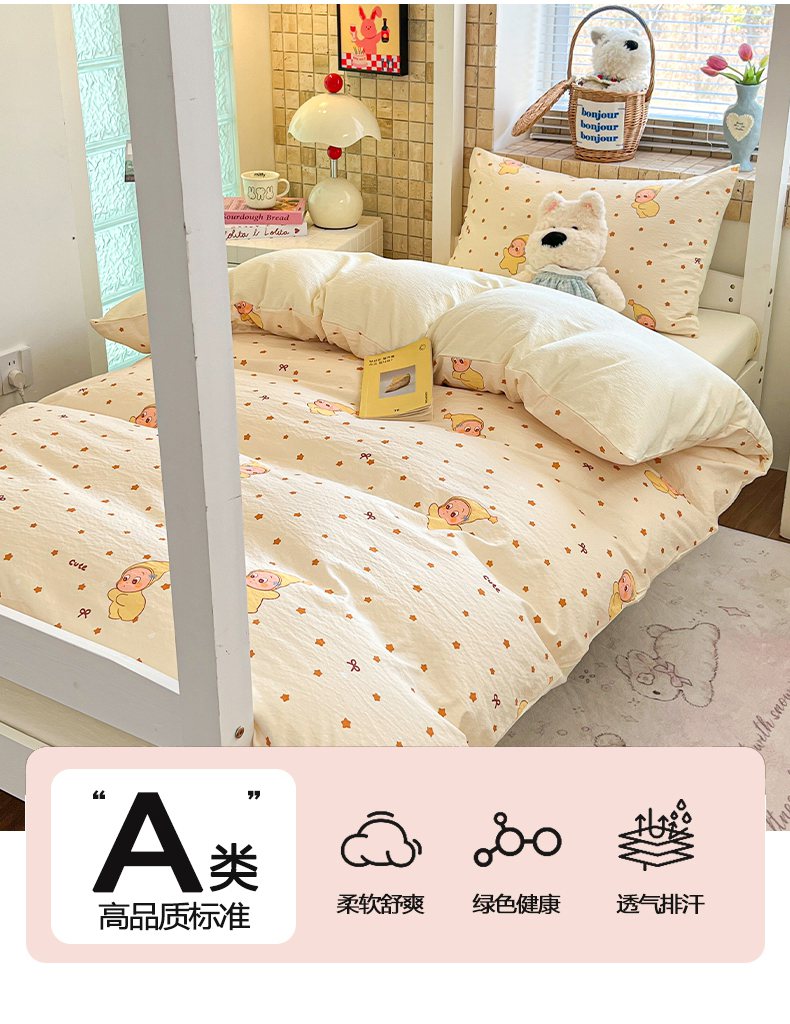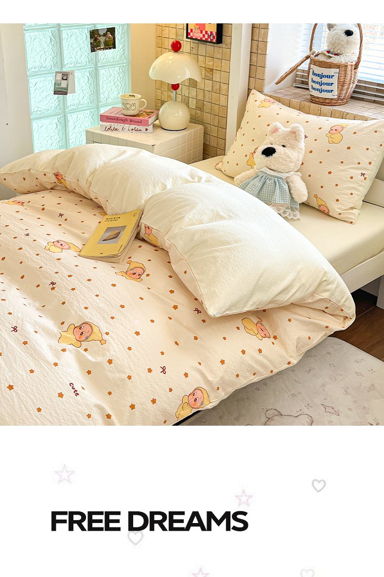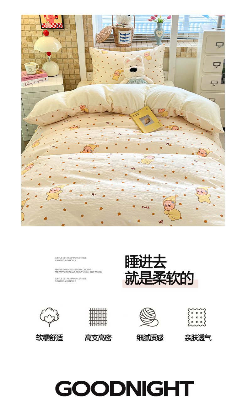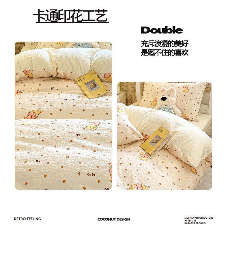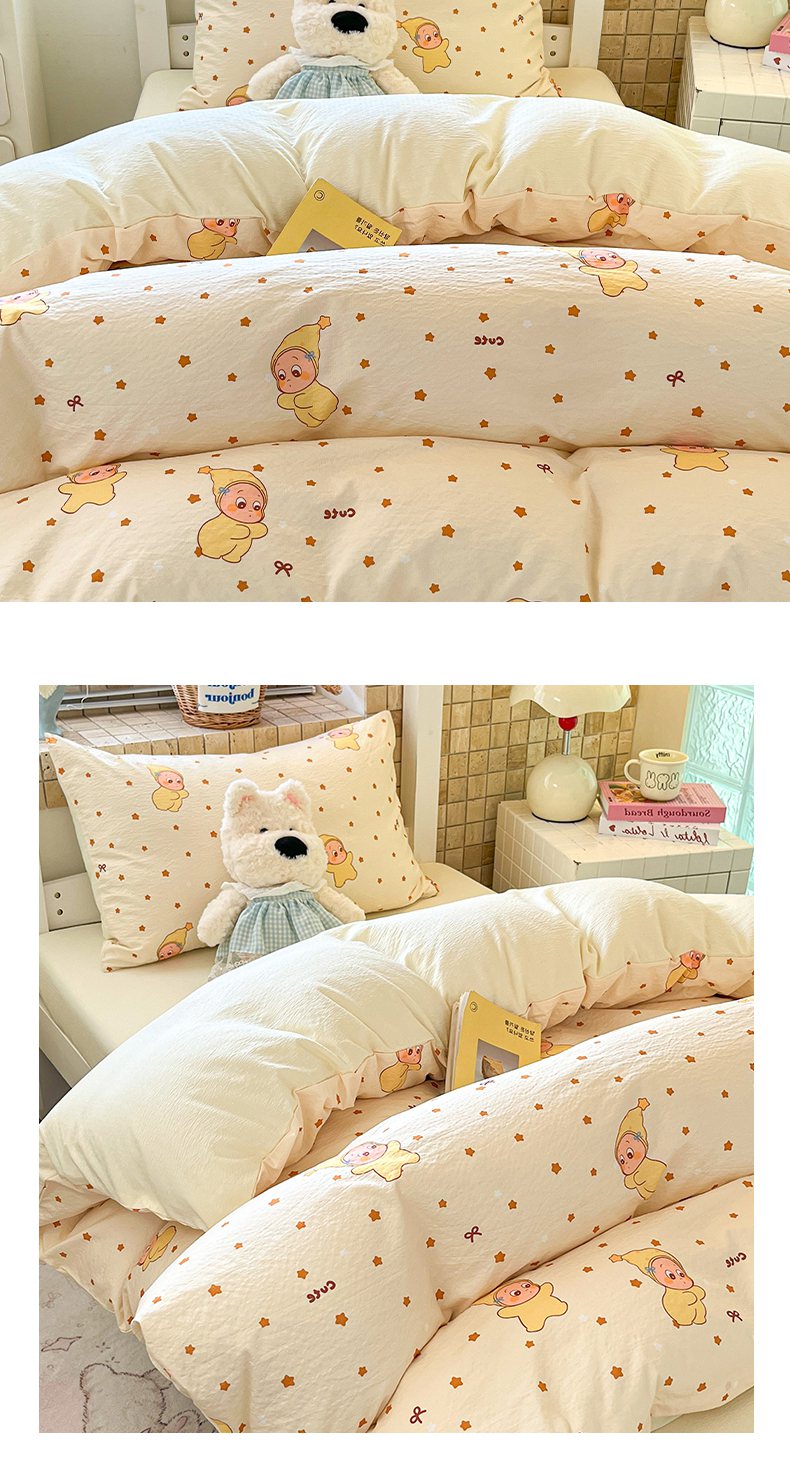 当前位置: 91家纺网 > 商品网购 > 床品套件 > 三件套 > 川悦生活 【提供买家秀】2026新款云感双层纱木棉学生床笠套件 恰星星