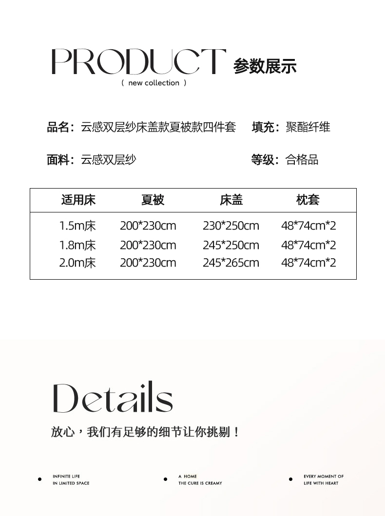 商品名称:蝶帕家纺 2026新款云感双层纱床盖款夏被夏凉被空调被四件套 简单爱