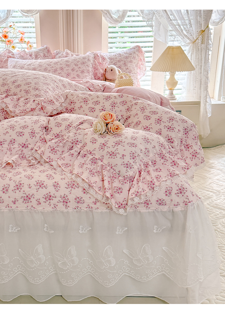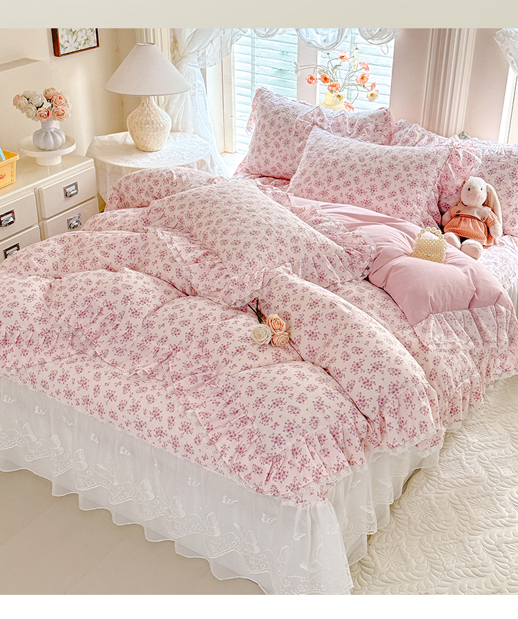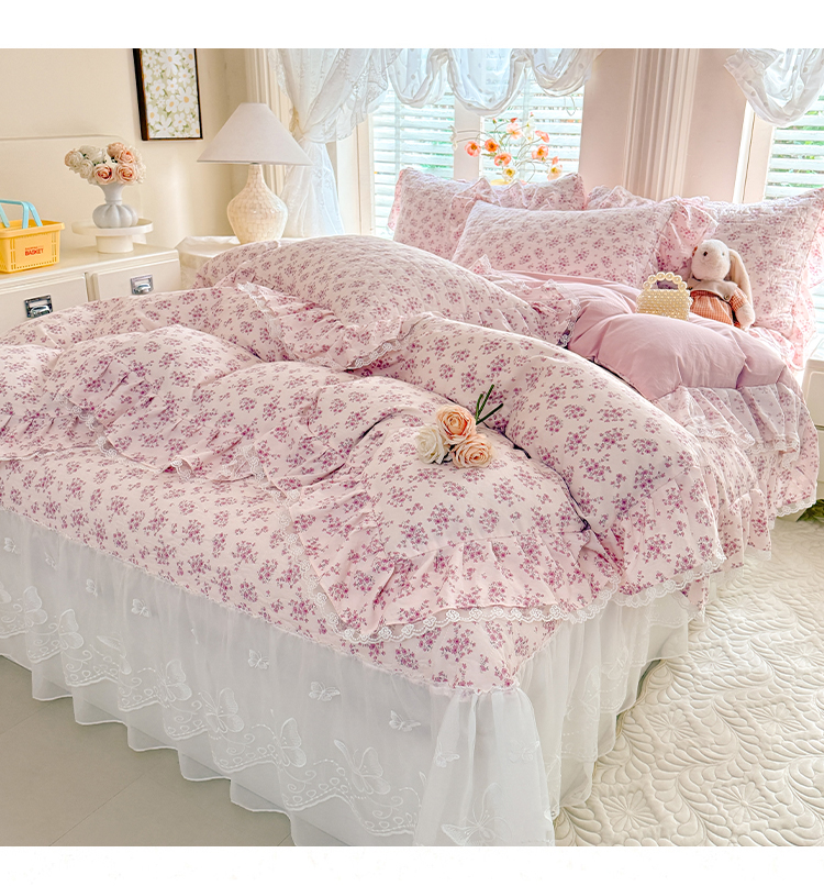 (总)苏米娜家纺2026春夏新款活性印花ins风小碎花软糯水洗棉床盖款四件套全棉纯棉花边款被套,春田绿, 兰黛 ,莫奈-粉 ,奶酪芝士 ,紫韵