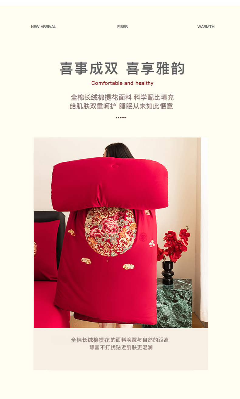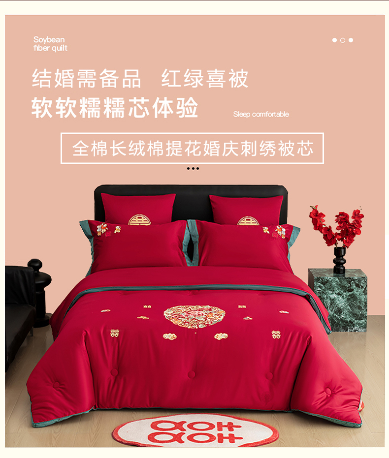 商品名称:甜咪咪婚庆 2026新款婚庆结婚全棉50双股100支长绒棉提花喜被被芯四季被 圆圆满满