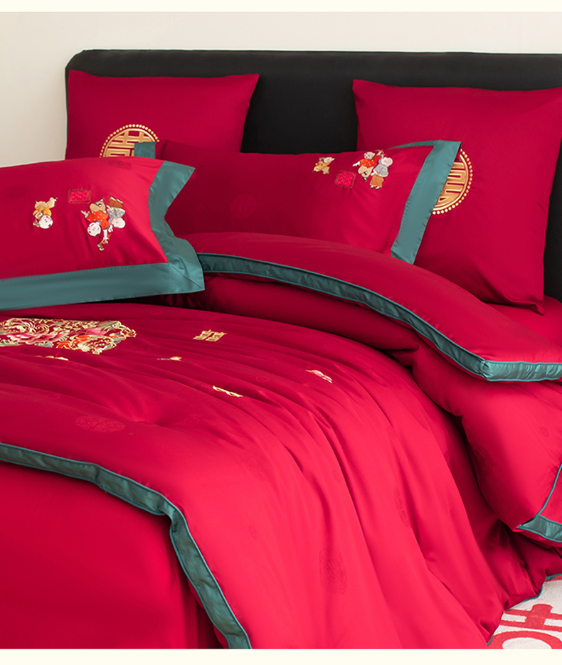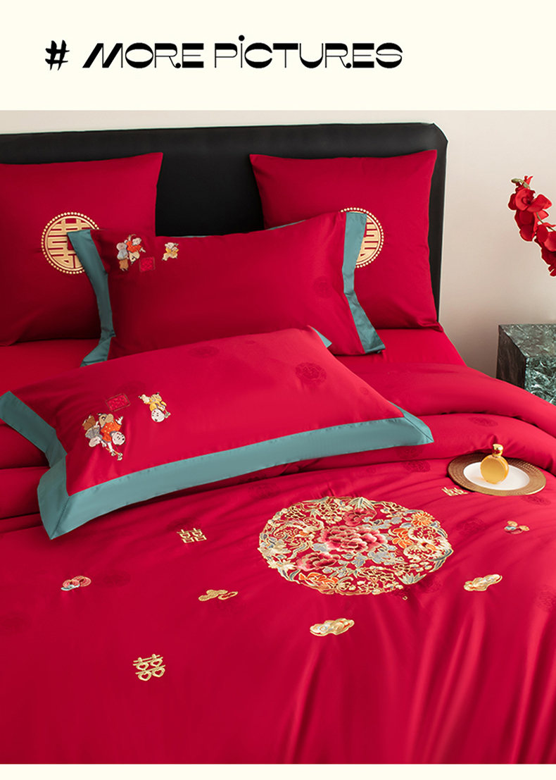 (总)甜咪咪婚庆 2025新款50支长绒棉全棉婚庆床单床盖四件套多件套刺绣工艺,洛可可,爱恋小熊,爱意久久,多子多福,花田喜事,节节高升,克拉恋人,浪漫情怀,怦然心动红,怦然心动玉,甜心玫瑰,温莎公主,伊甸园,醉红妆