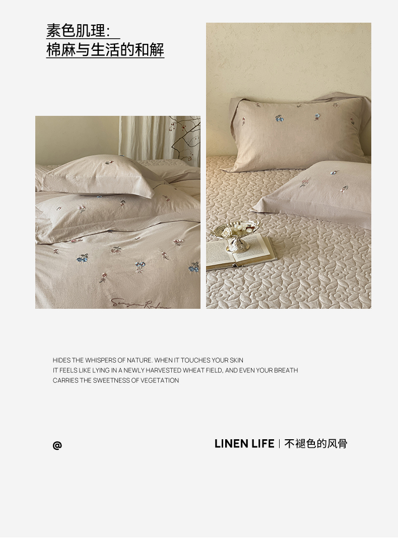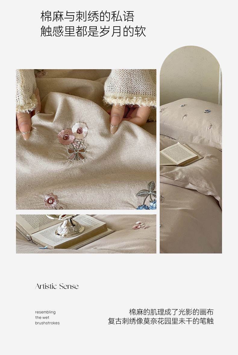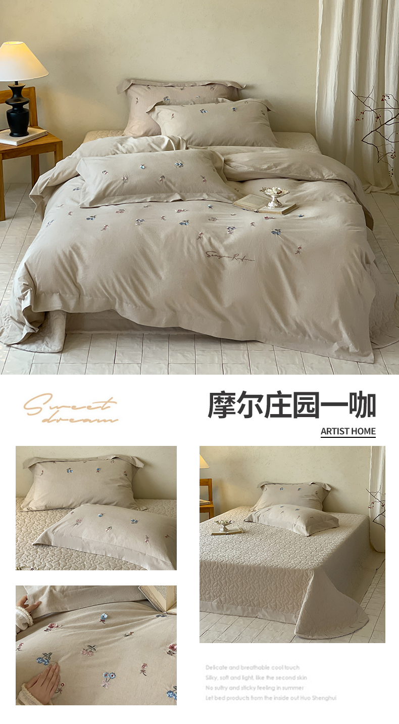 当前位置: 91家纺网 > 商品网购 > 床品套件 > 四件套 > 棉麻四件套 > (总)名品优仓 2026春夏新款棉麻刺绣四件套-摩尔庄园