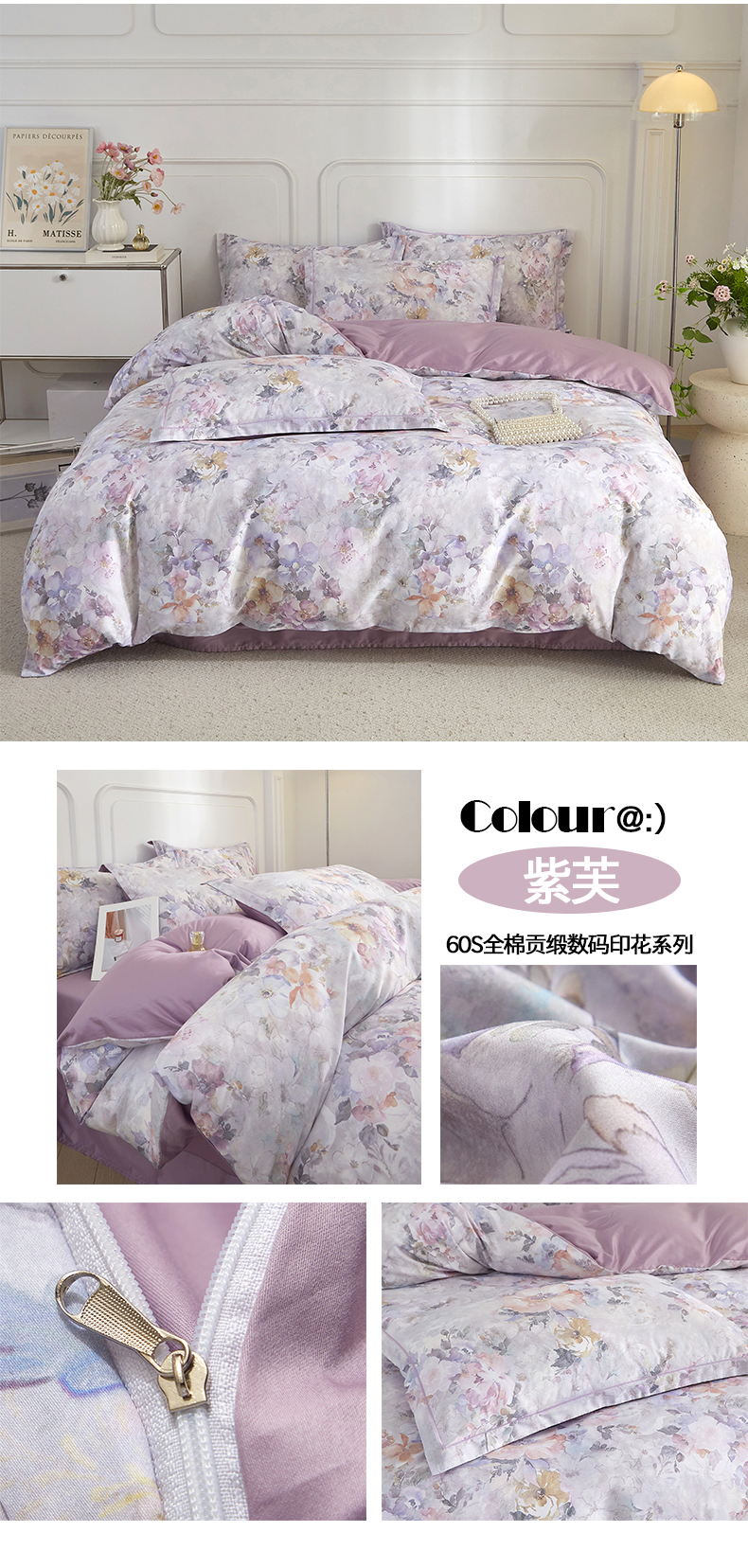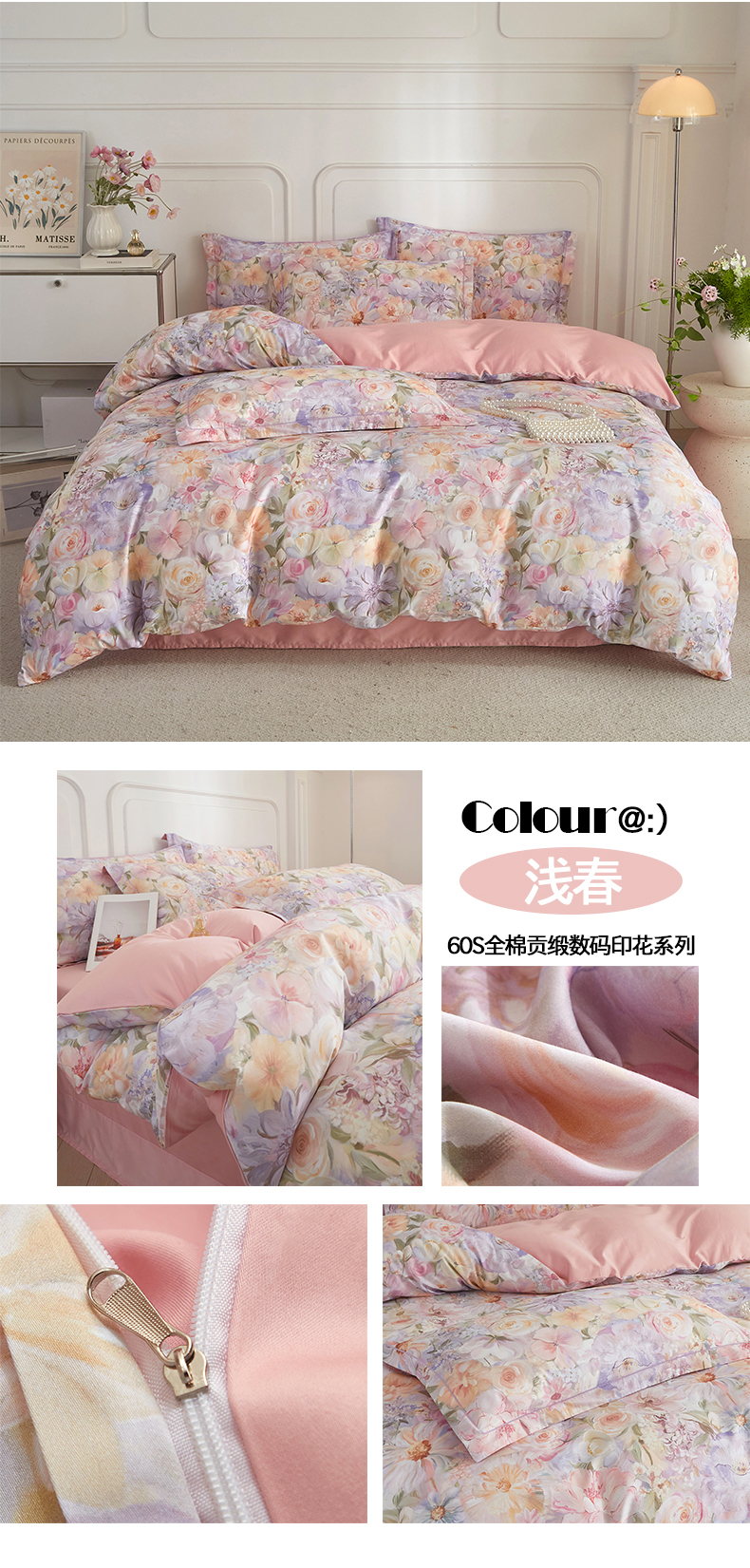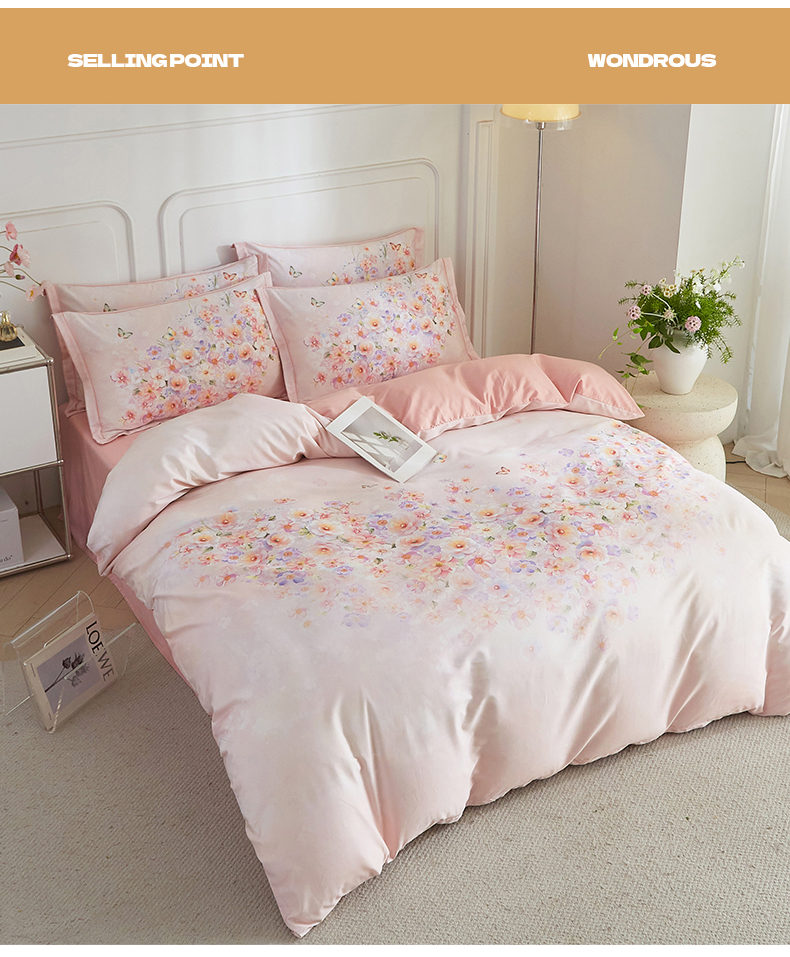 当前位置: 91家纺网 > 商品网购 > 床品套件 > 四件套 > 全棉普通四件套 > 锦彩家居 2026新款全棉纯棉印花60支贡缎新疆长绒棉四件套-山月记系列 春归