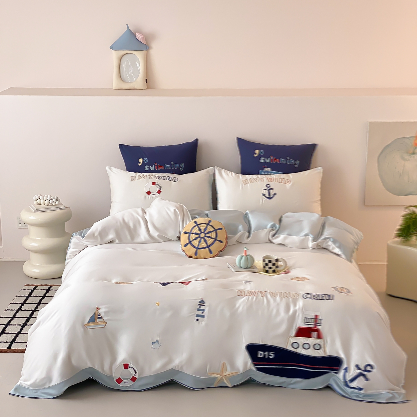 当前位置: 91家纺网 > 商品网购 > 床品套件 > 四件套 > 莱赛尔四件套 > (总)星野 2026新款60S兰精天丝刺绣贴布绣四件套-深海大冒险