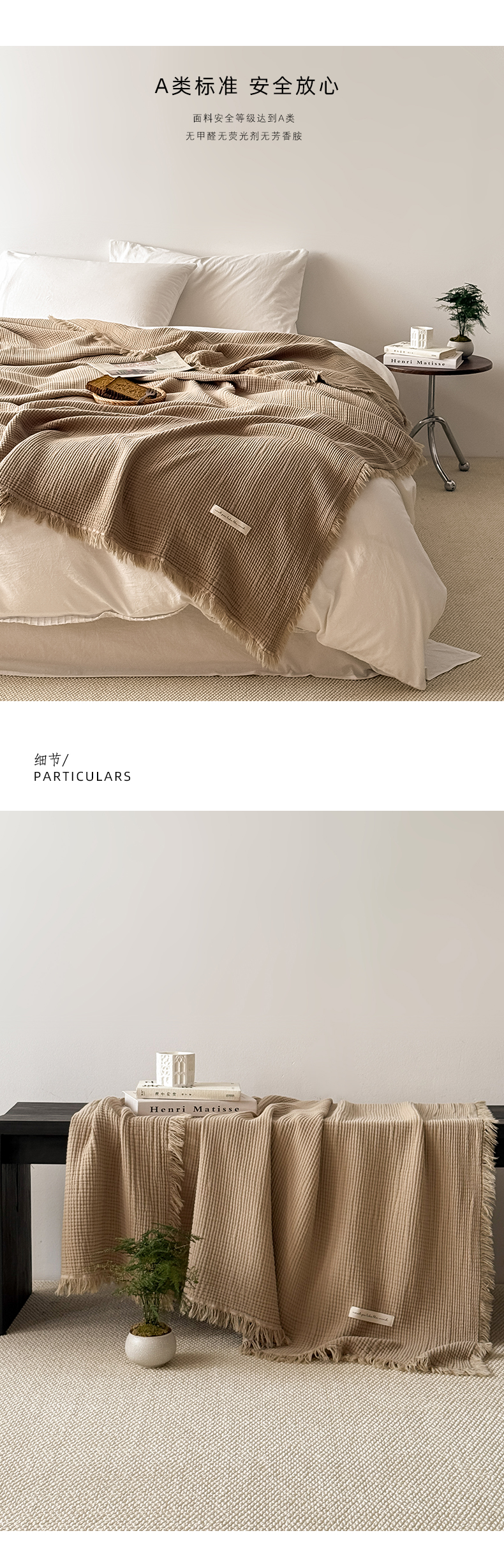 Mr.pig猪先生水洗棉 2026新款全棉四层纱毯子(展示价格为控价,实际价格请联系客服) 咖喱