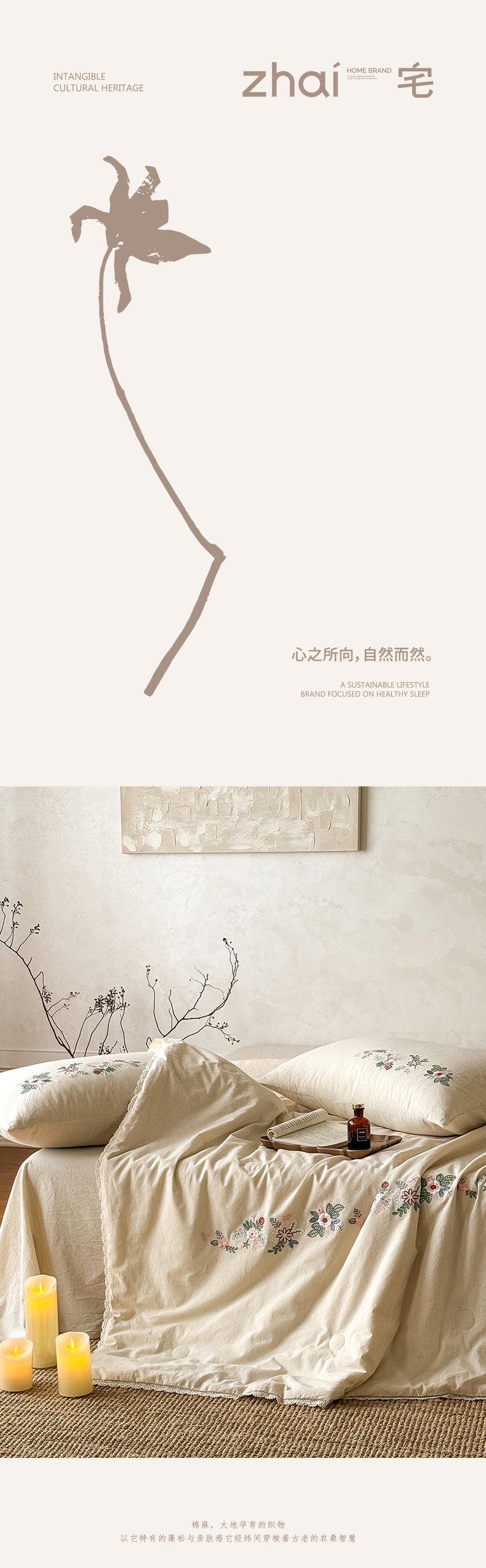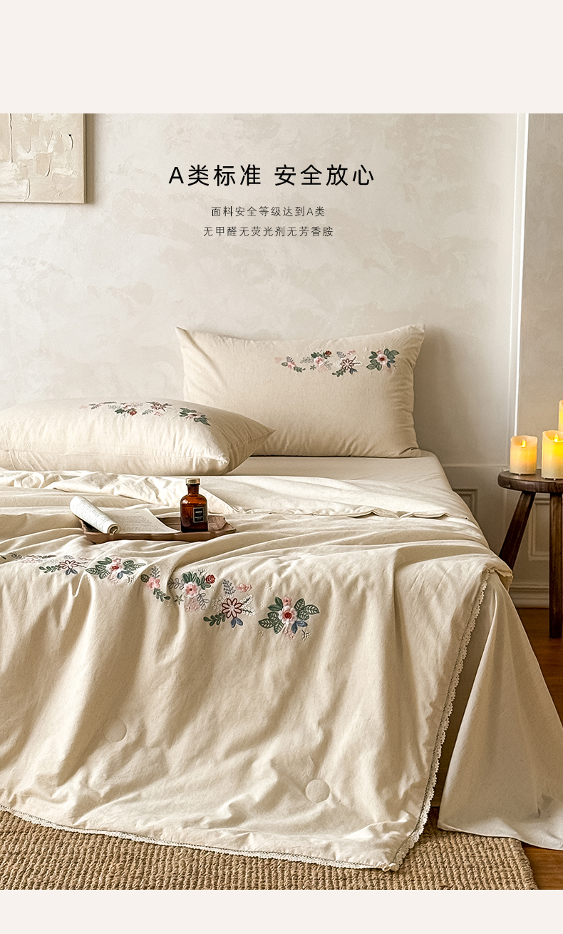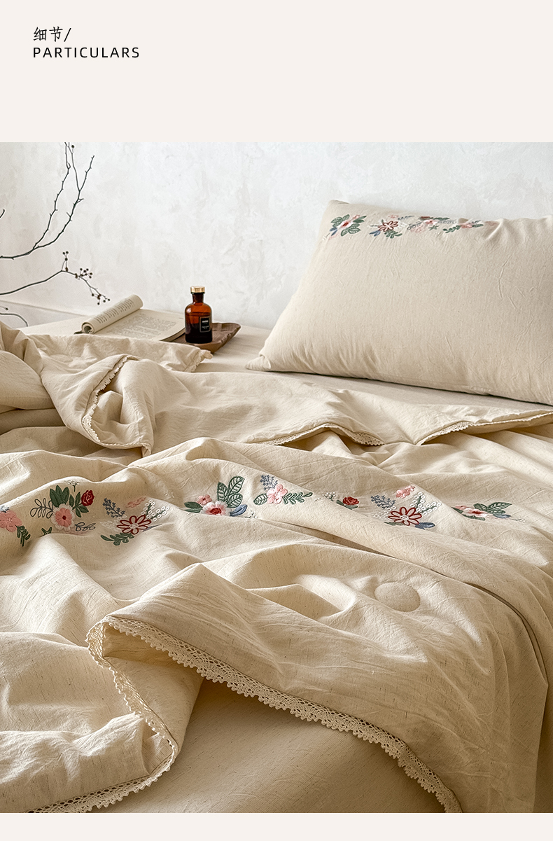 商品名称:(总)Mr.pig猪先生水洗棉 2026新款棉麻绣花花边夏被-简兮(展示价格为控价,实际价格请联系客服)