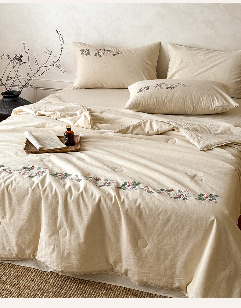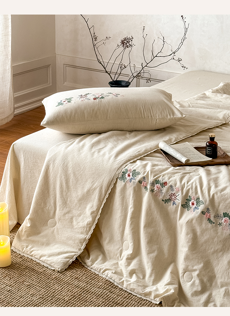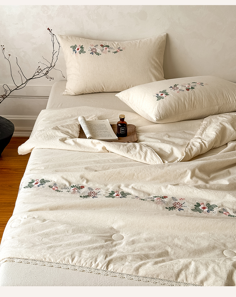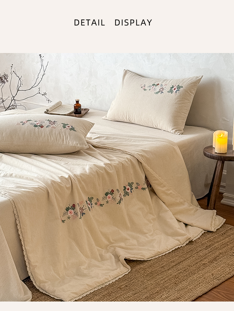 商品名称:(总)Mr.pig猪先生水洗棉 2026新款棉麻绣花花边夏被-简兮(展示价格为控价,实际价格请联系客服)