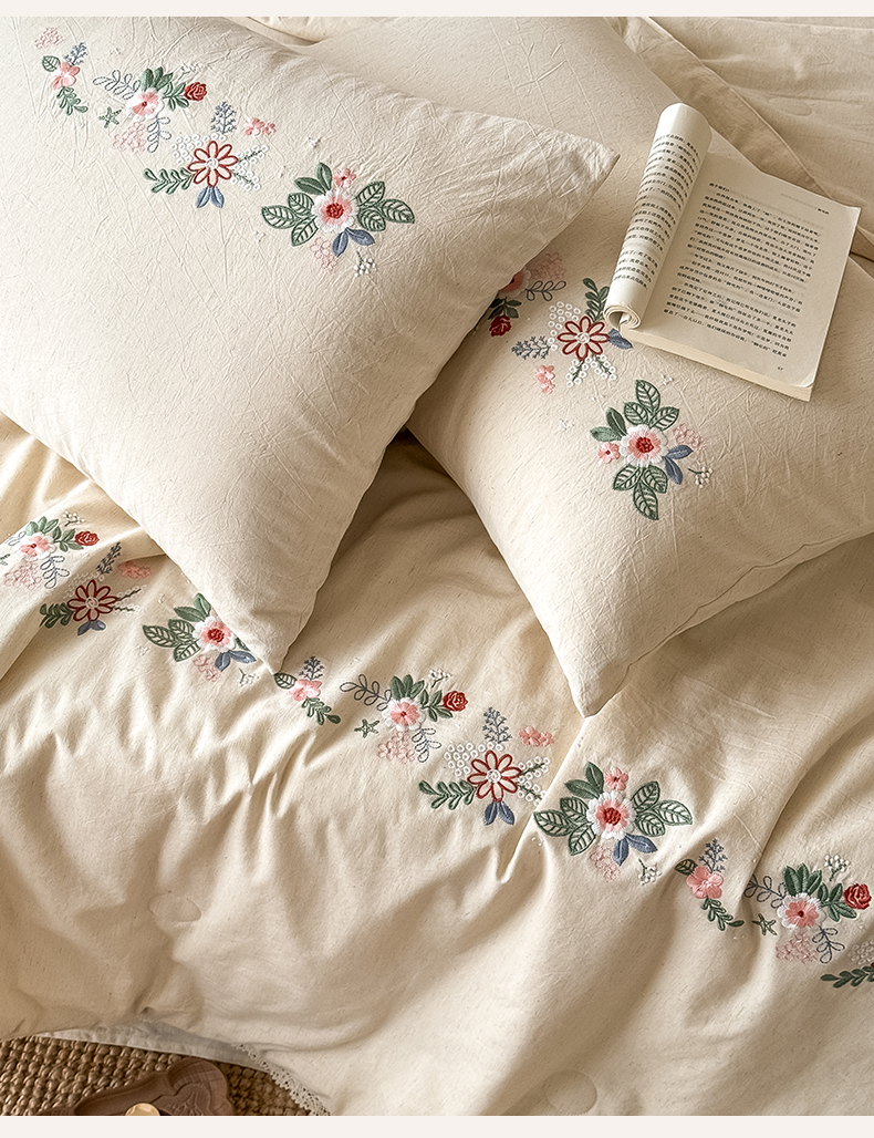 (总)Mr.pig猪先生水洗棉 2026新款A类棉麻四件套中古风全棉纯棉亚麻被套床单轻奢高档床上用品(供货价联系门市,展示价格为控价),海棠广玉兰,花韵玉兰,石榴