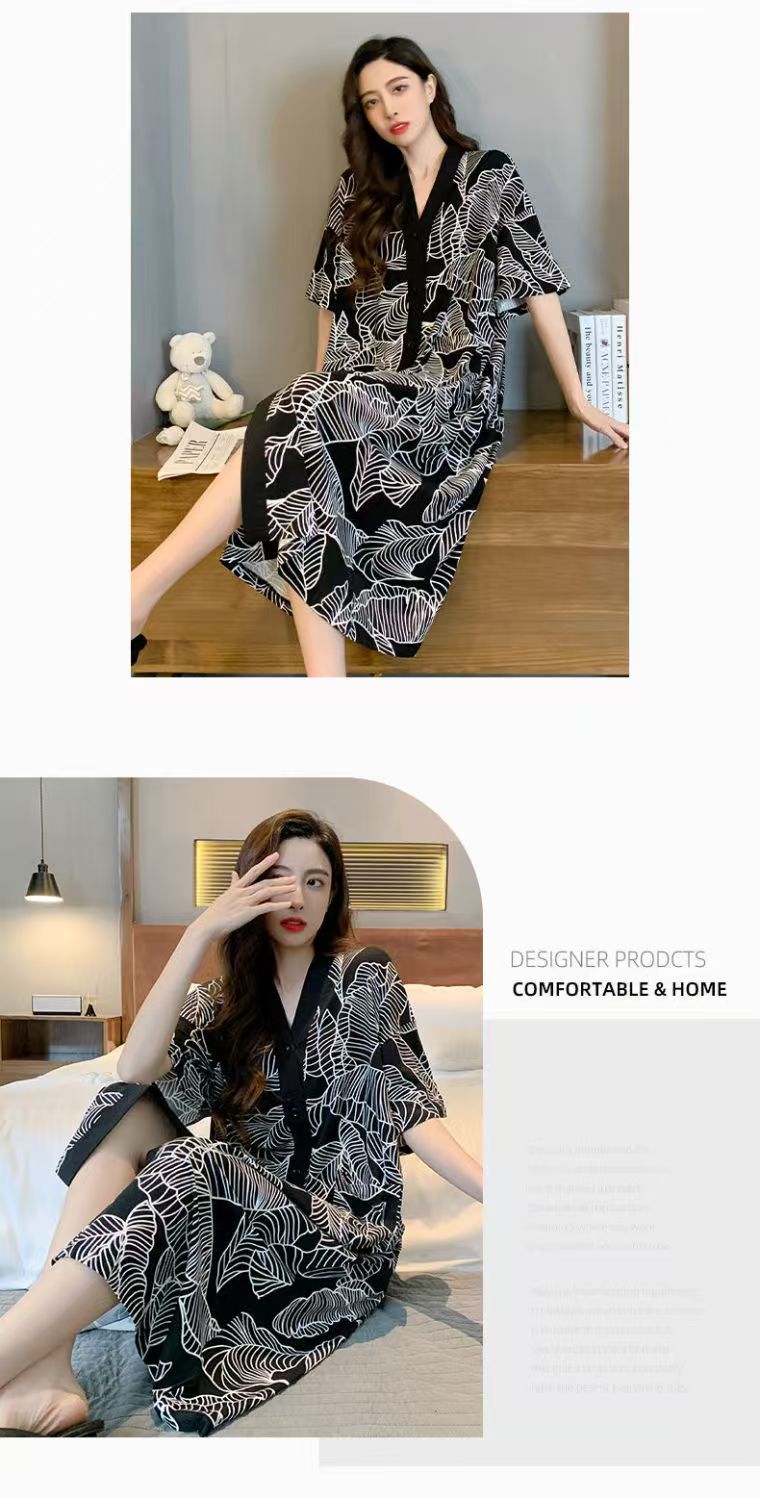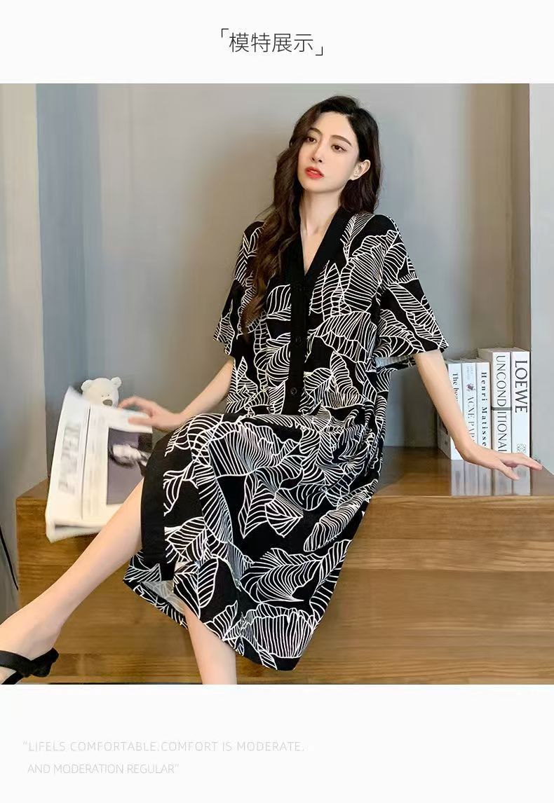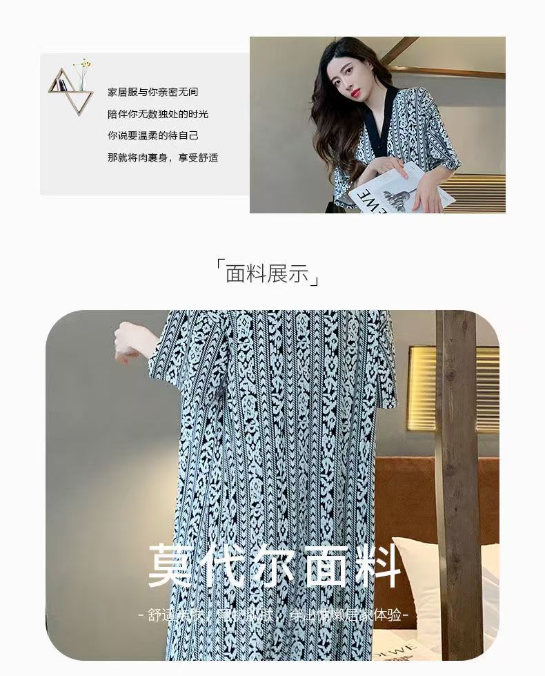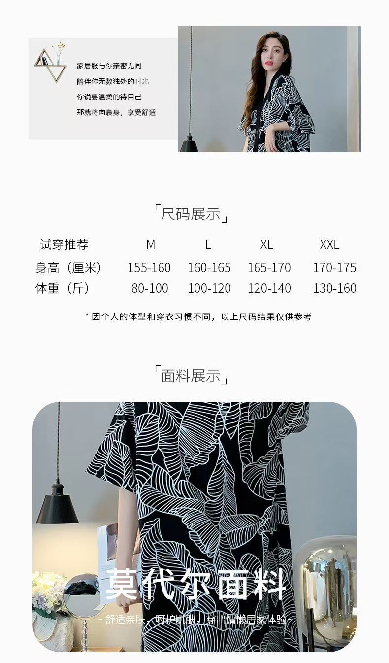 商品名称:(总)洛兰沙家居馆 日系睡裙女春秋莫代尔棉短袖长裙家居服休闲宽松舒适睡衣可外穿