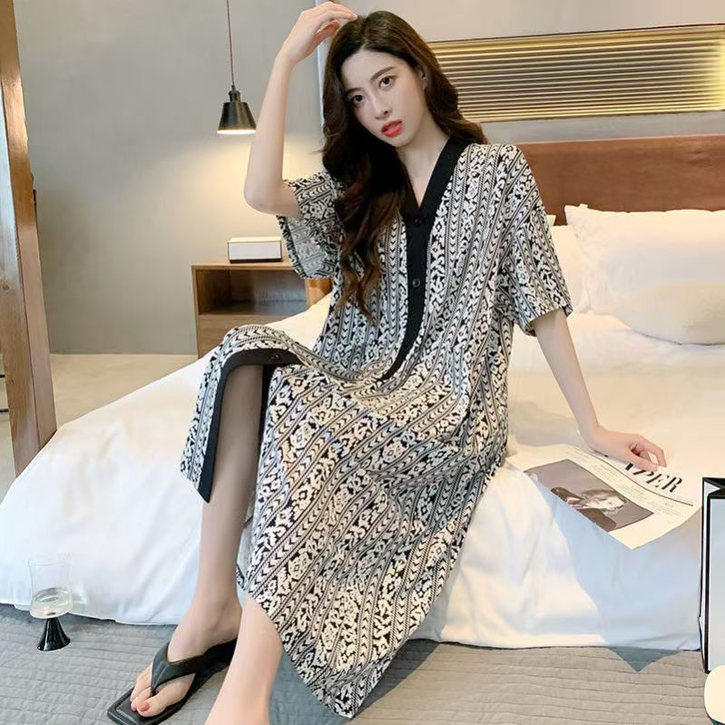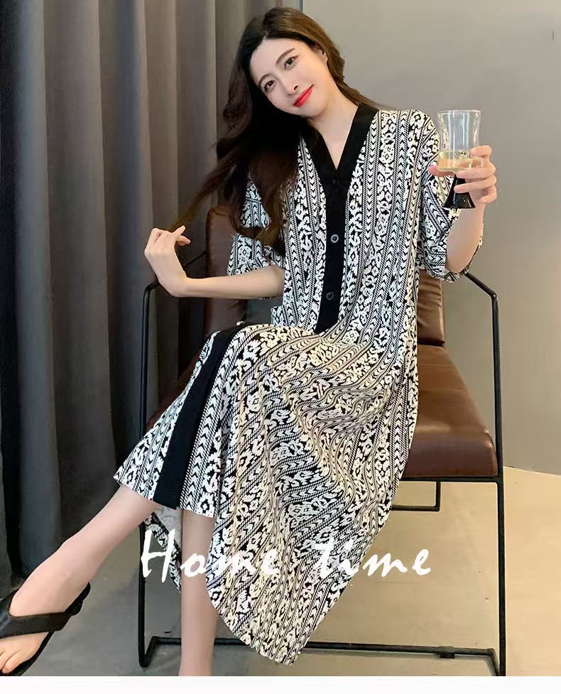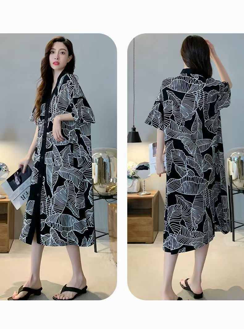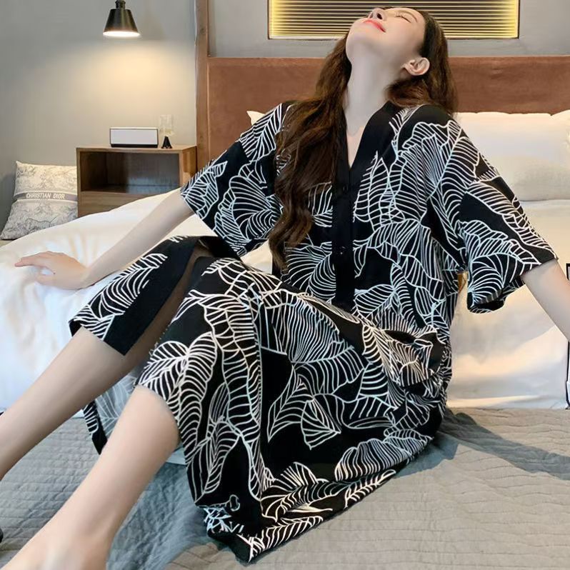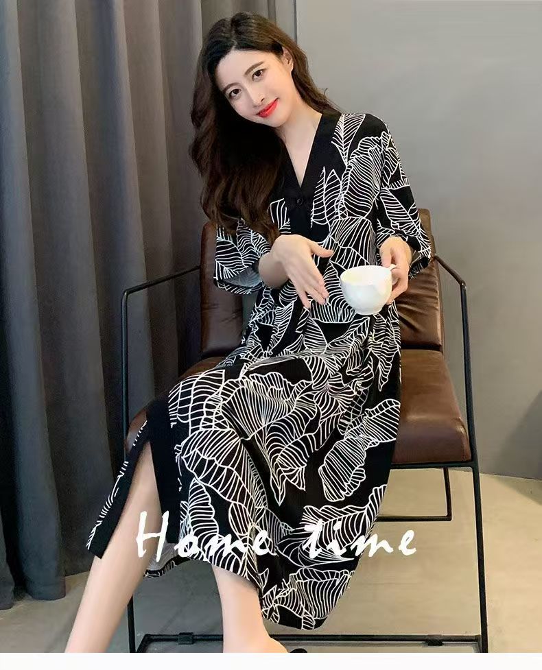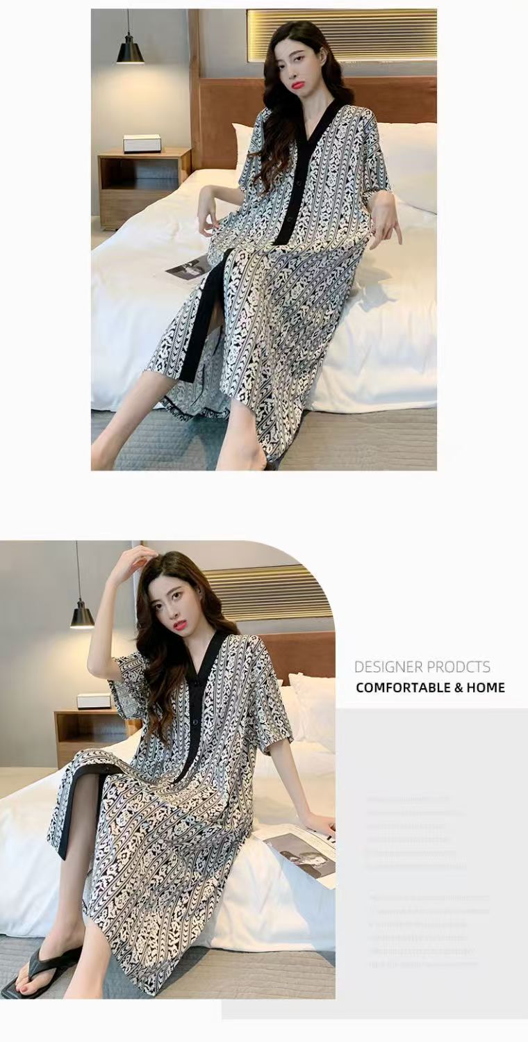 商品名称:(总)洛兰沙家居馆 日系睡裙女春秋莫代尔棉短袖长裙家居服休闲宽松舒适睡衣可外穿