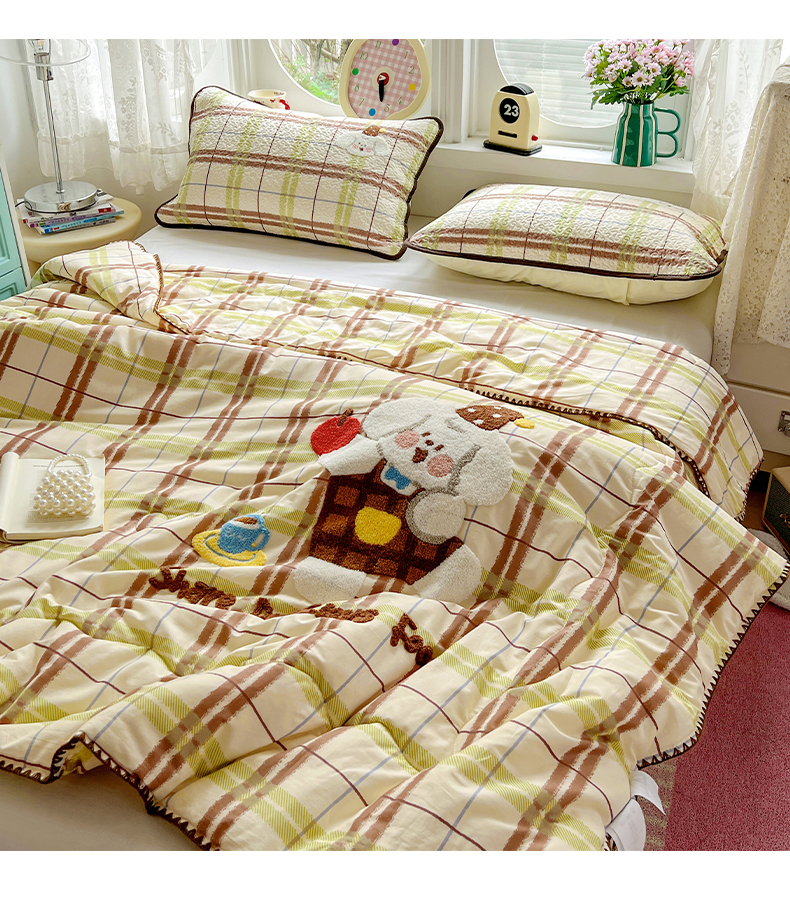 • 91家纺网 家纺一手货源 找家纺 (总)鑫喜莱家纺 2026新款全棉纯棉夏被毛巾绣贝壳边大豆纤维全棉夏凉被空调被夹棉绗棉枕套,酷酷的小熊,面包小狗,苹果小狗,线团小黑猫,星星人