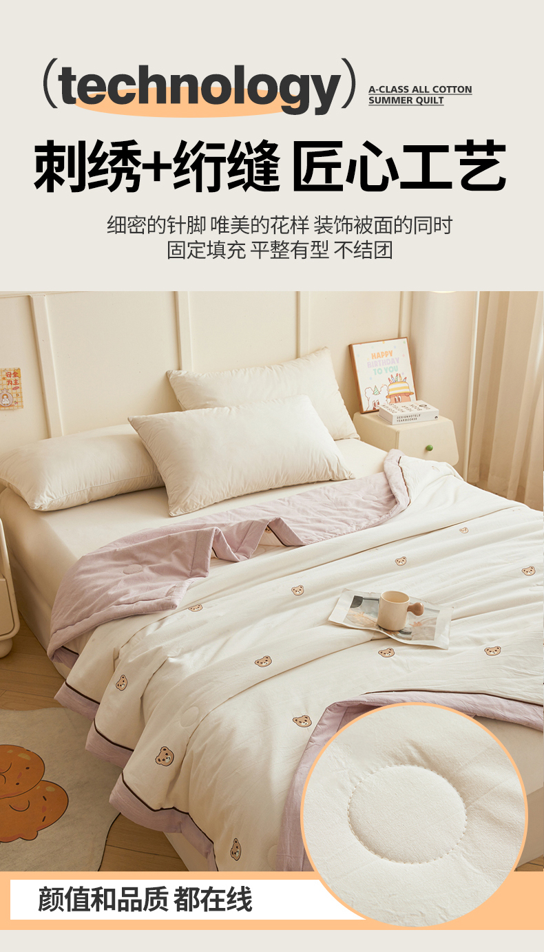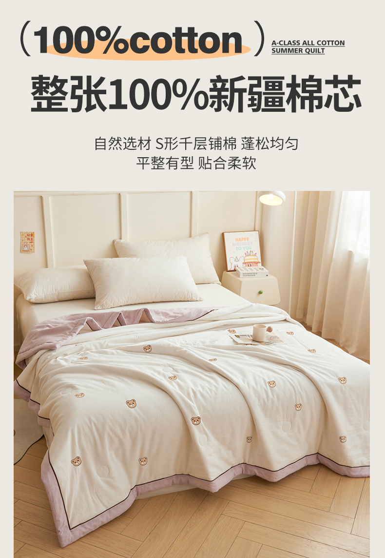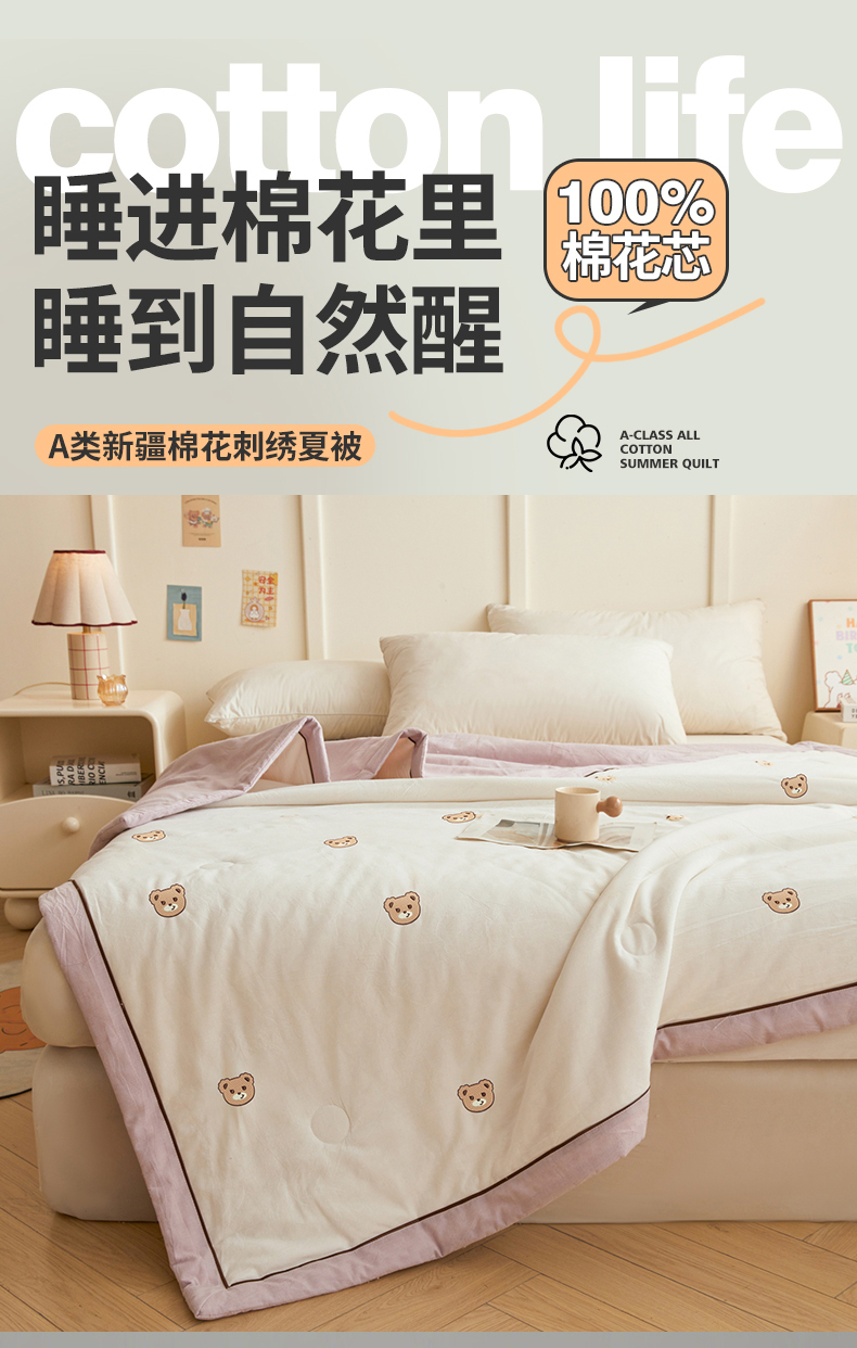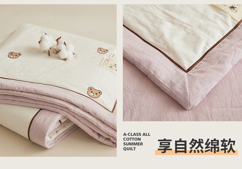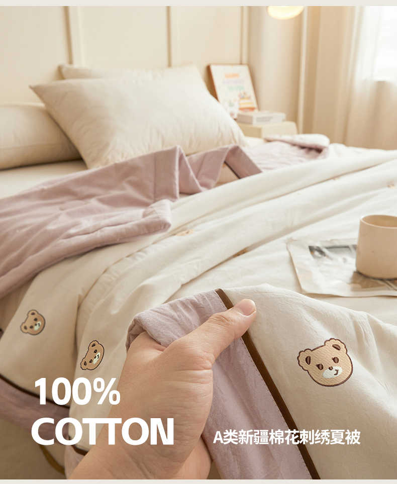 仁凯家纺 2026新款A类100%棉花刺绣款手包边夏被夏凉被空调被 安妮熊-紫