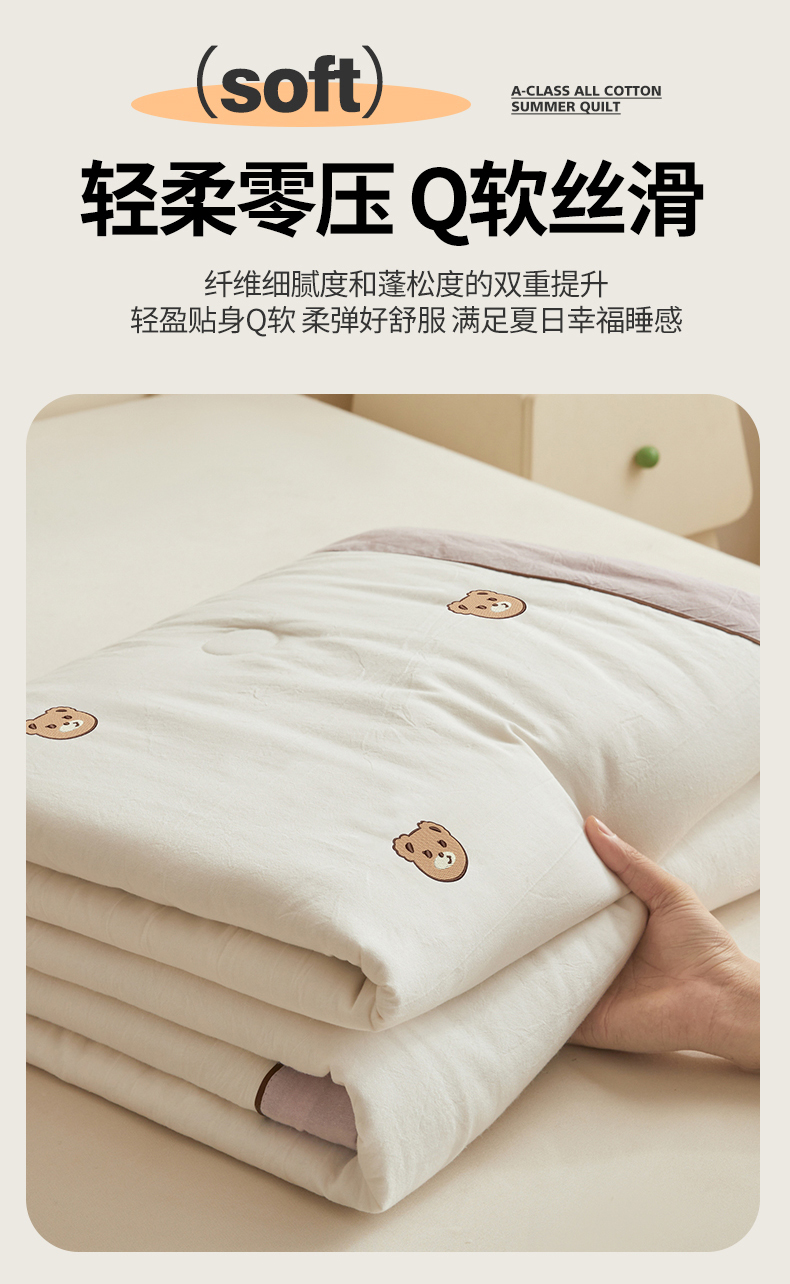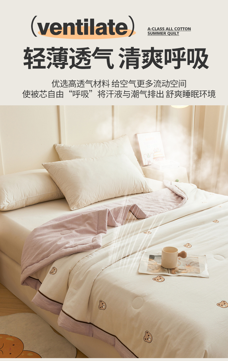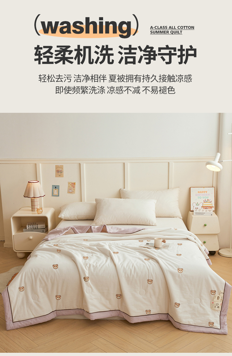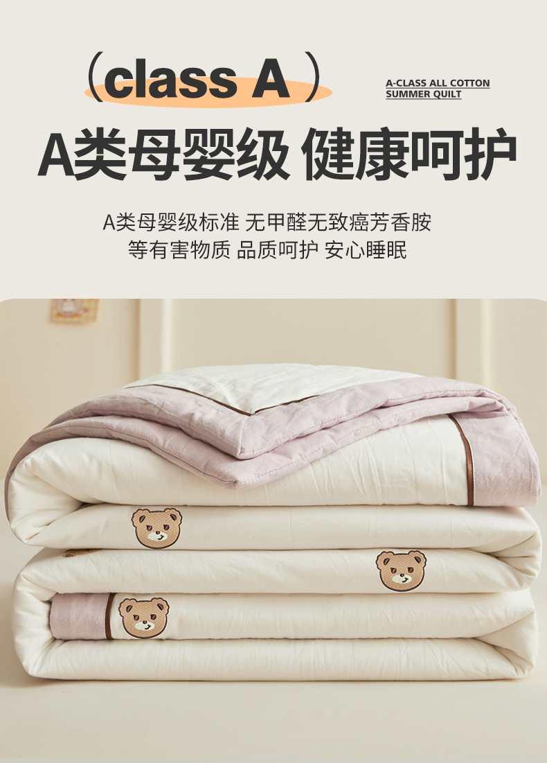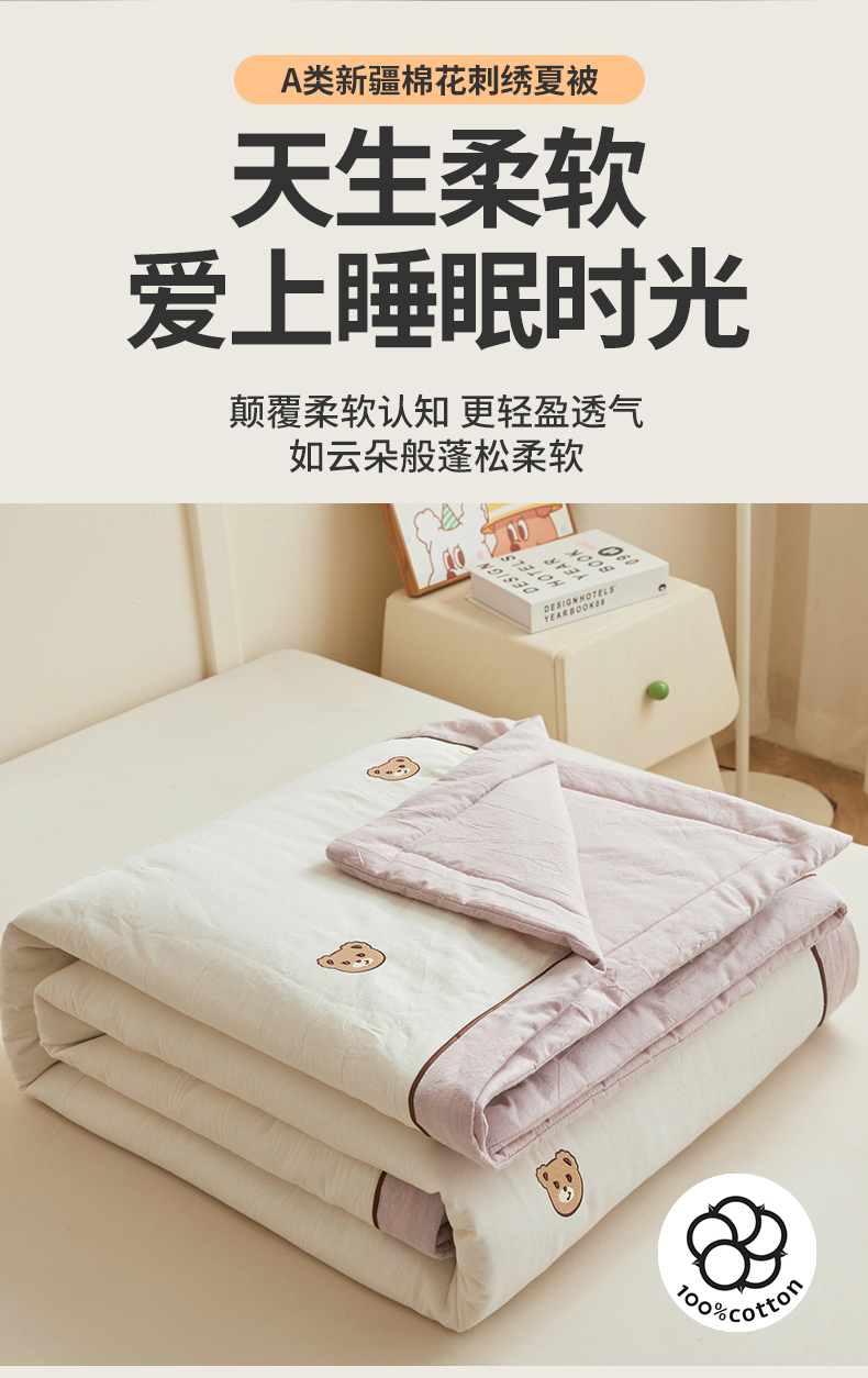 仁凯家纺 2026新款A类100%棉花刺绣款手包边夏被夏凉被空调被 安妮熊-紫