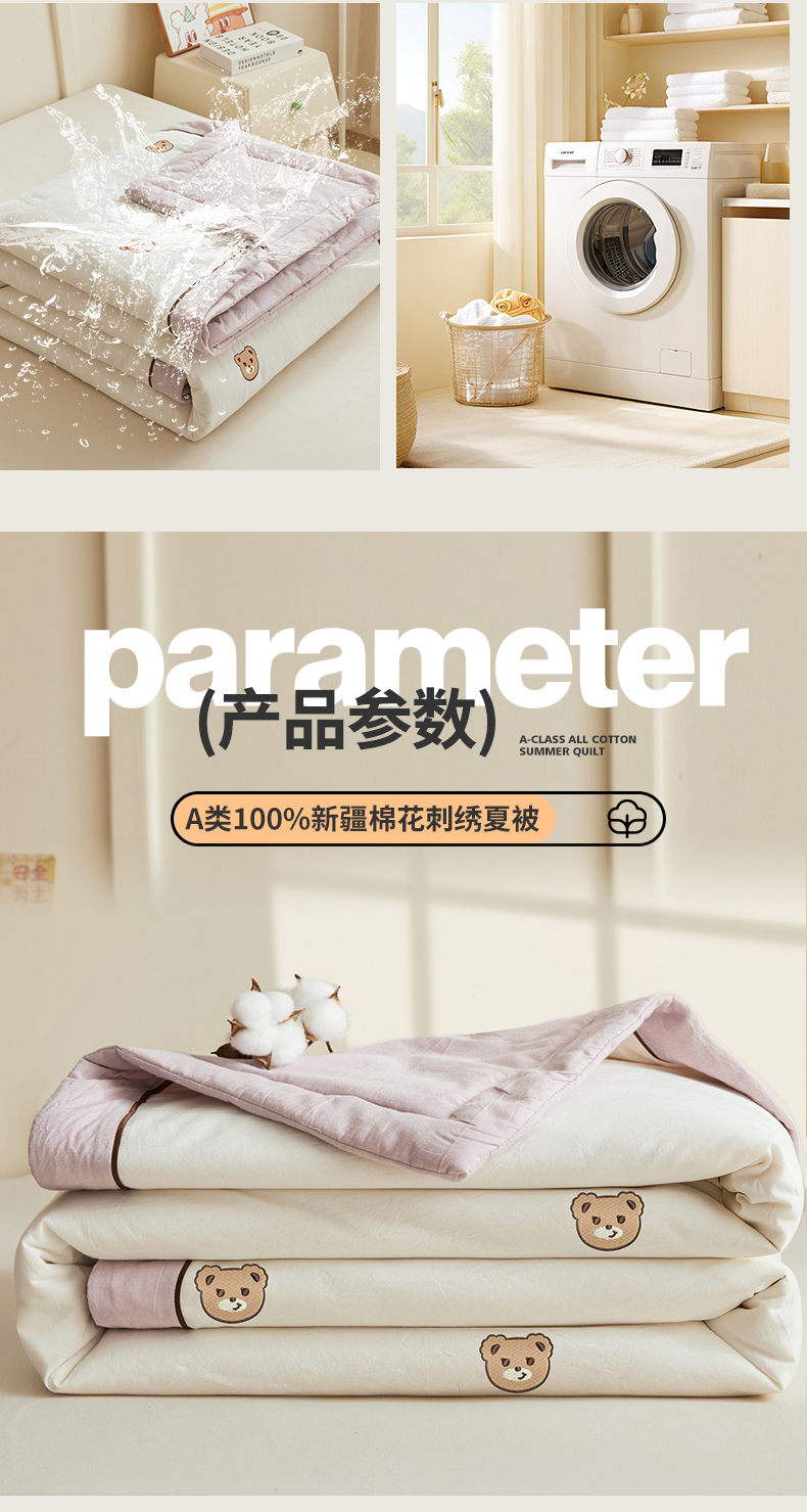 商品名称:仁凯家纺 2026新款A类100%棉花刺绣款手包边夏被夏凉被空调被 安妮熊-紫