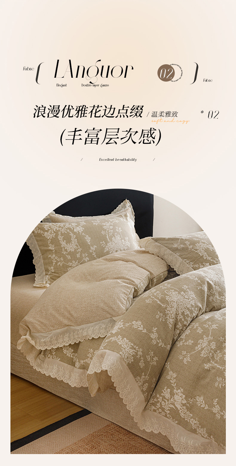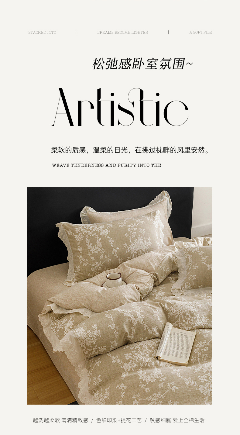 (总)悦然毛巾被 2026春夏新款加厚原麻水洗复古风四件套亚麻提花花边四件套,浮雕花影,花梦缘,花影织梦,木棉花信,相思叶
