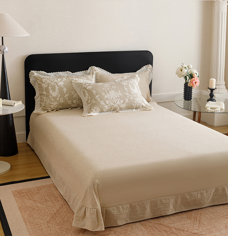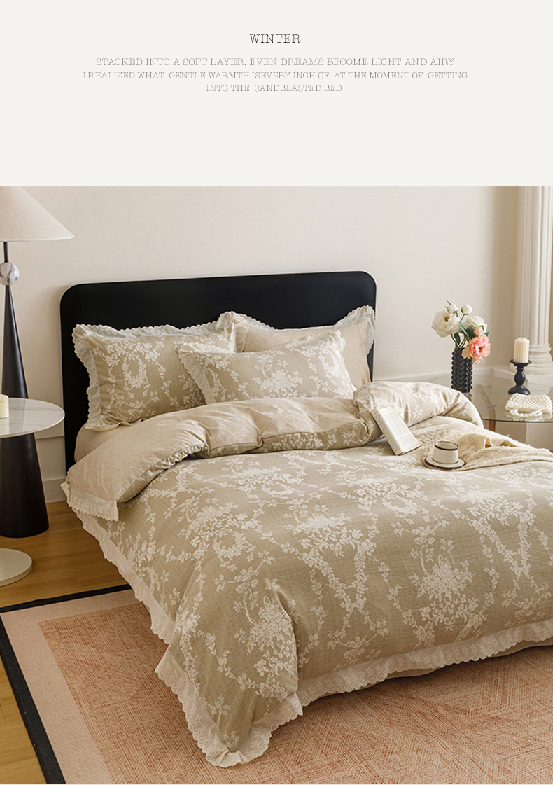 悦然毛巾被 2026春夏新款加厚原麻水洗复古风四件套亚麻提花花边四件套 花梦缘