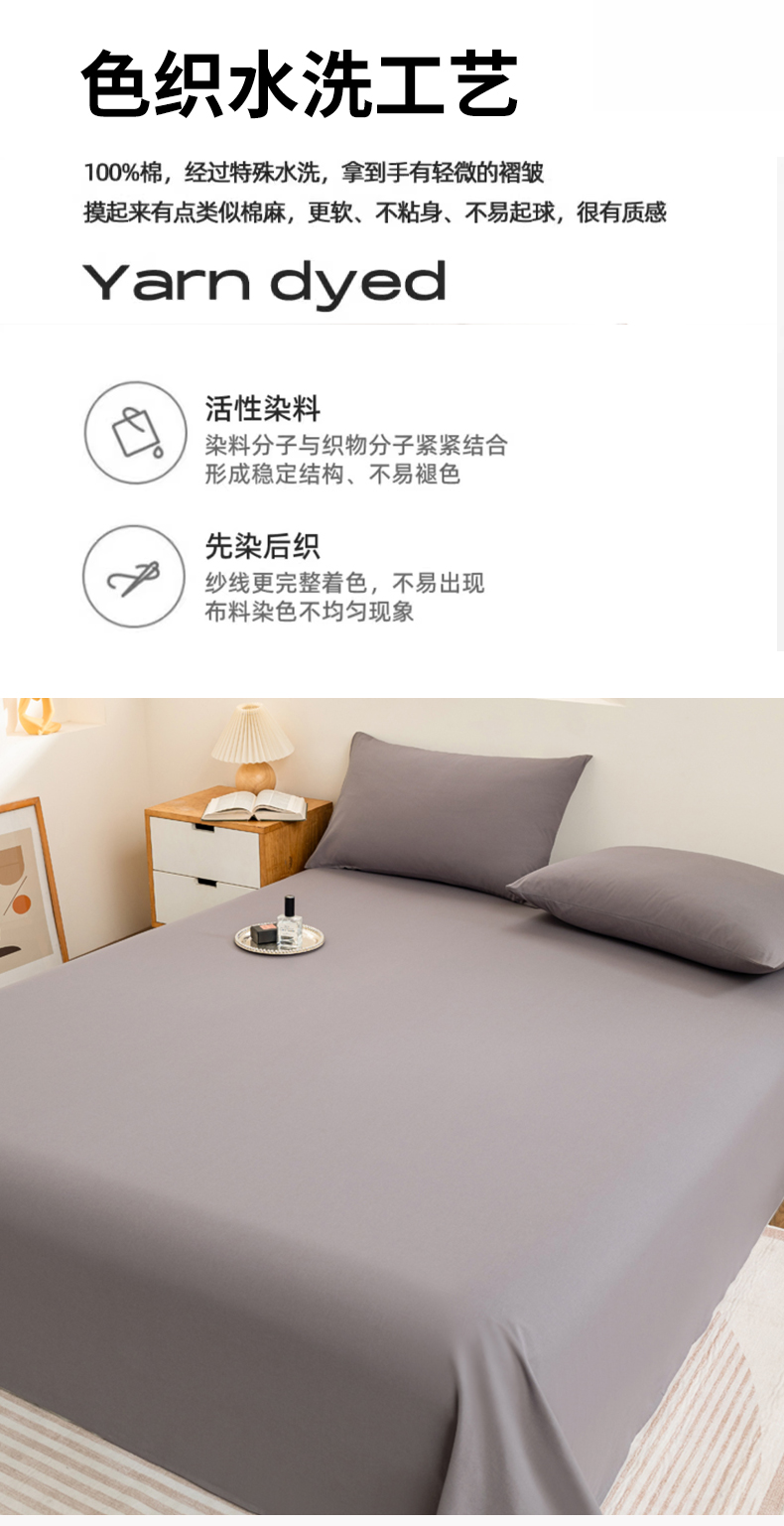 居美良品 2026新款100%全棉色织水洗棉A类纯棉床单单品床单床单单件 经典灰
