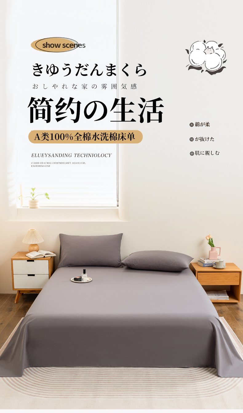• 91家纺网 家纺一手货源 找家纺 居美良品 2026新款100%全棉色织水洗棉A类纯棉床单单品床单床单单件 经典灰