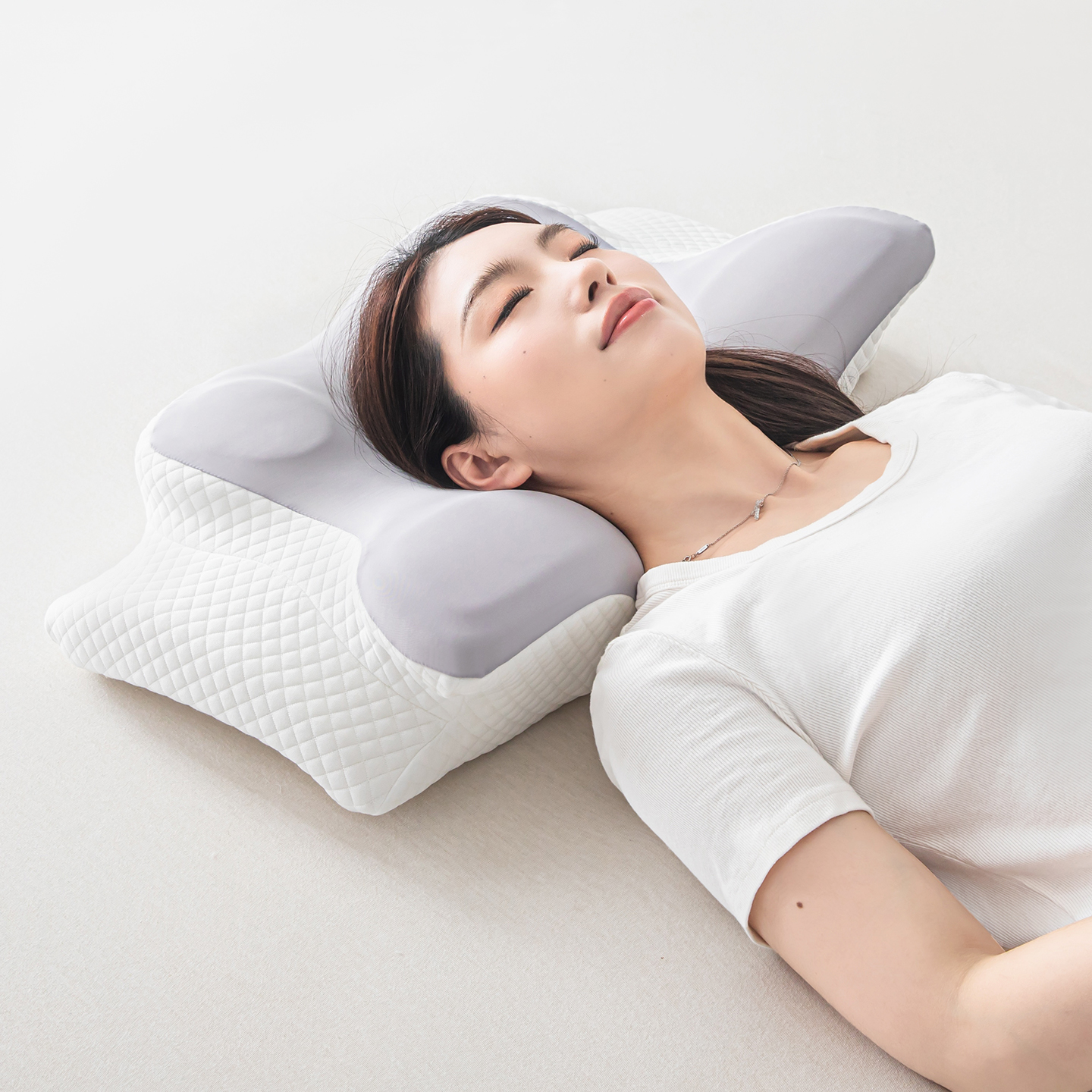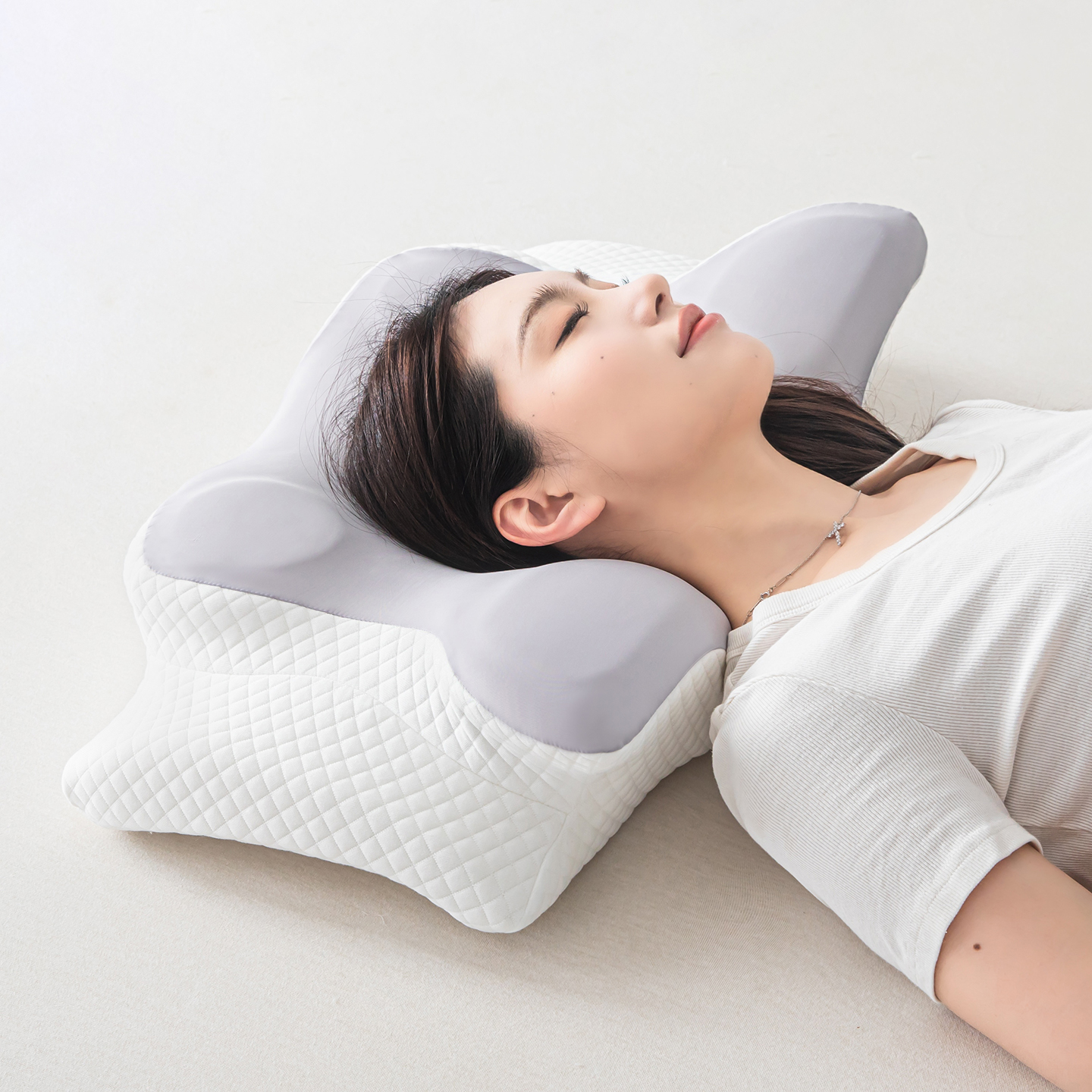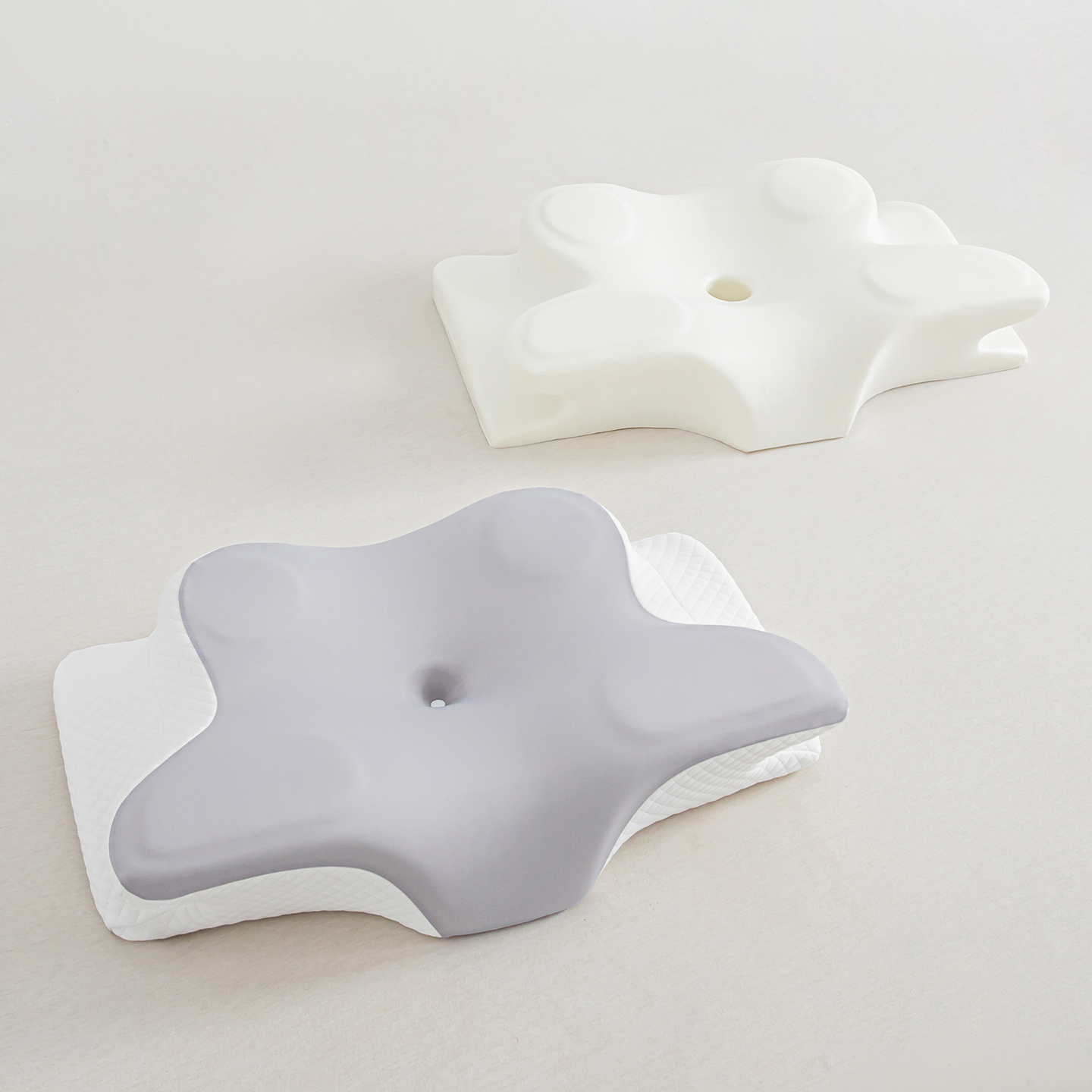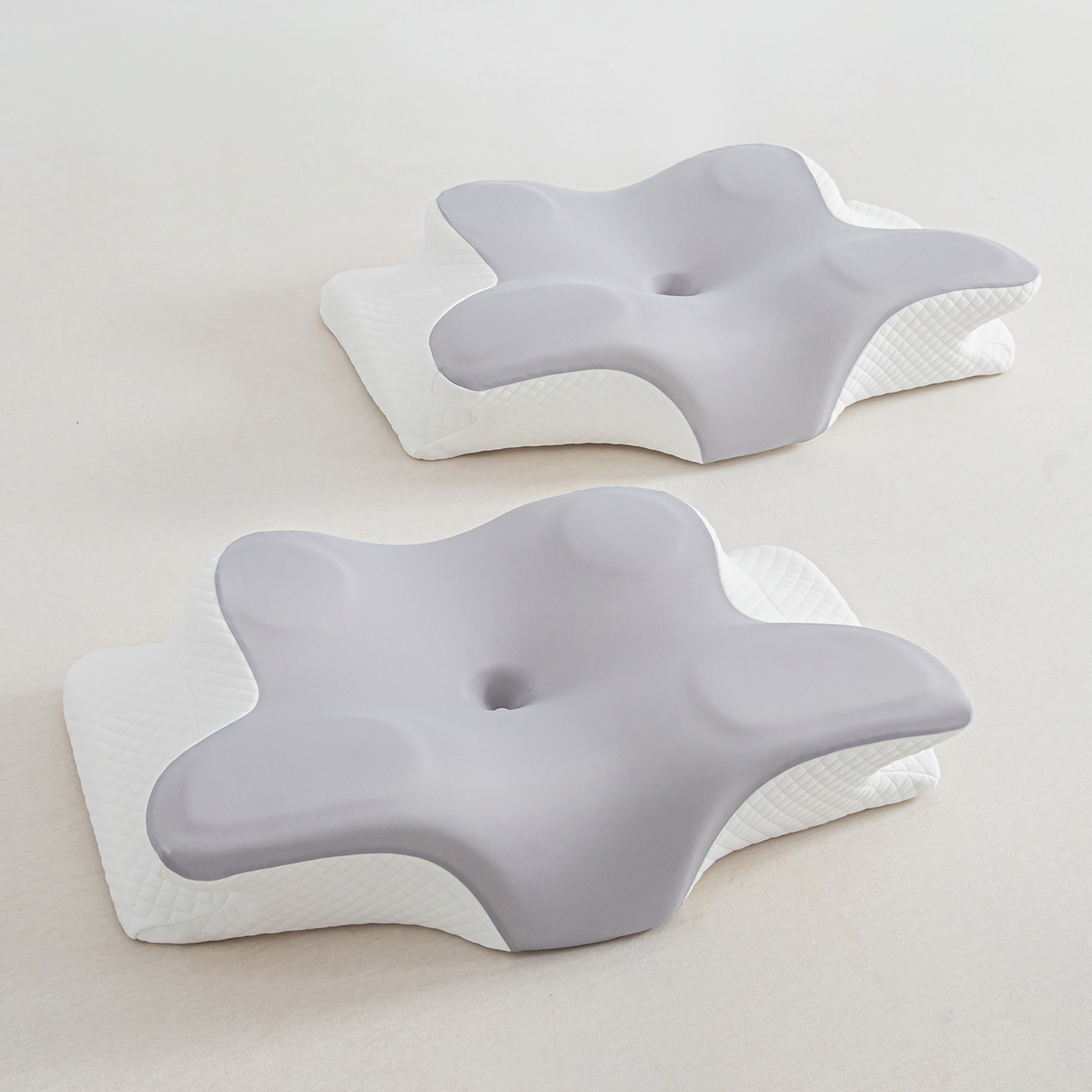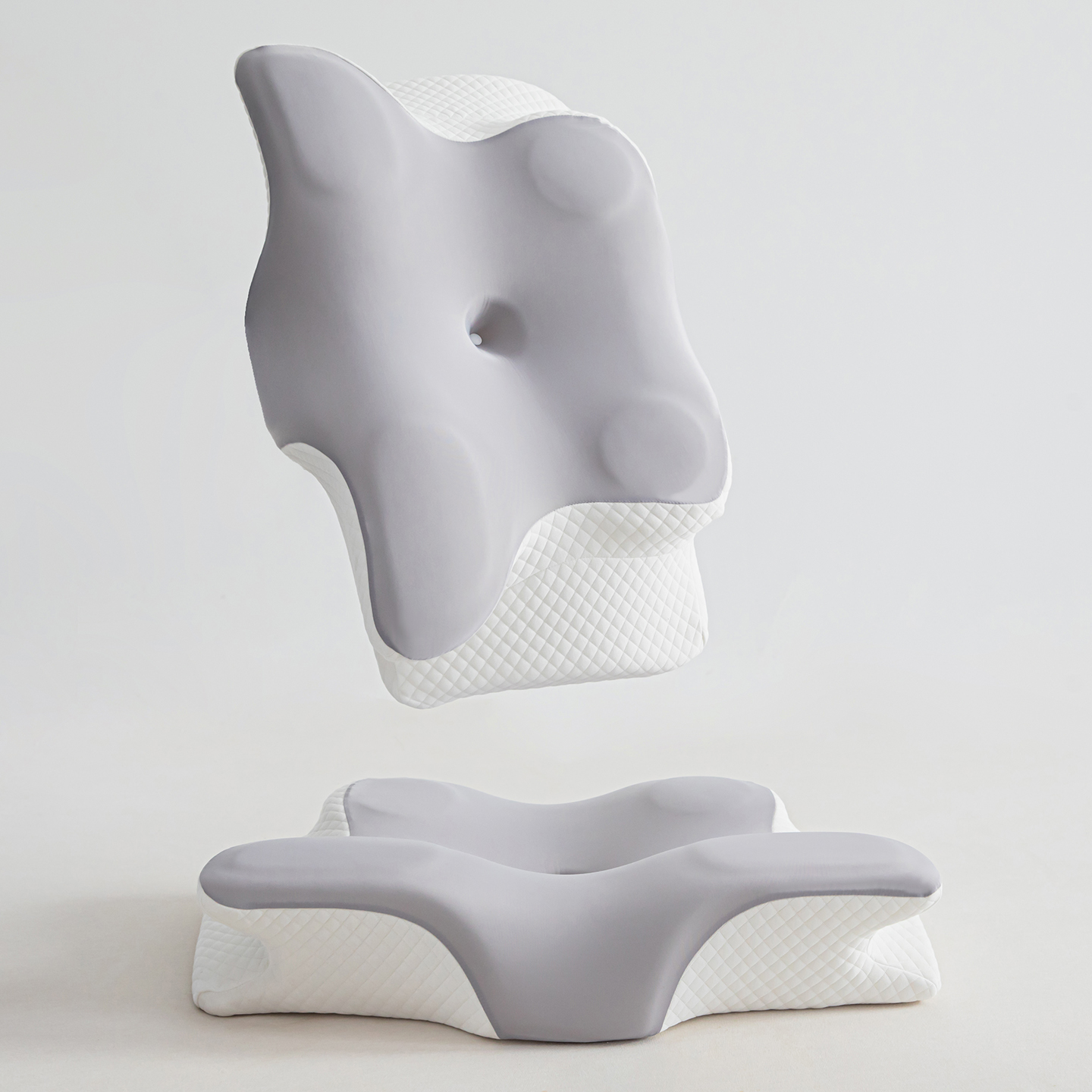 (总)枕星记忆枕 2025新款二合一护颈牵引记忆分区枕 枕头枕芯,粉+白,灰+白