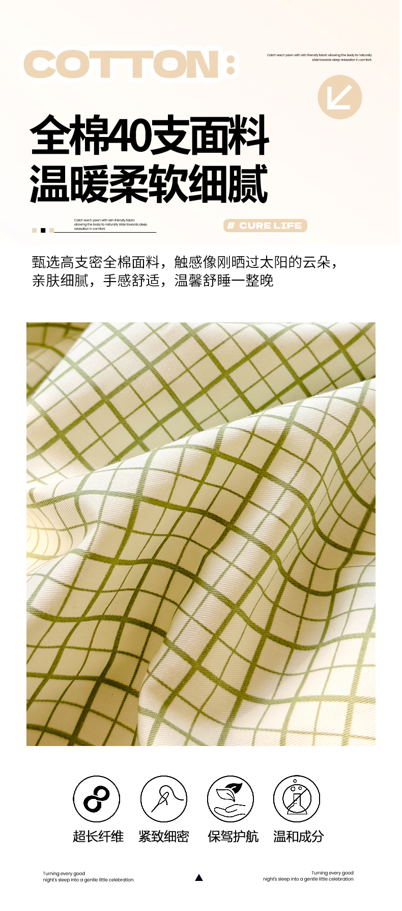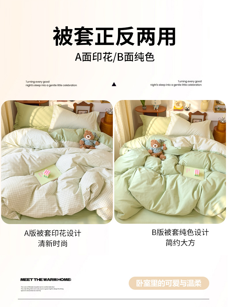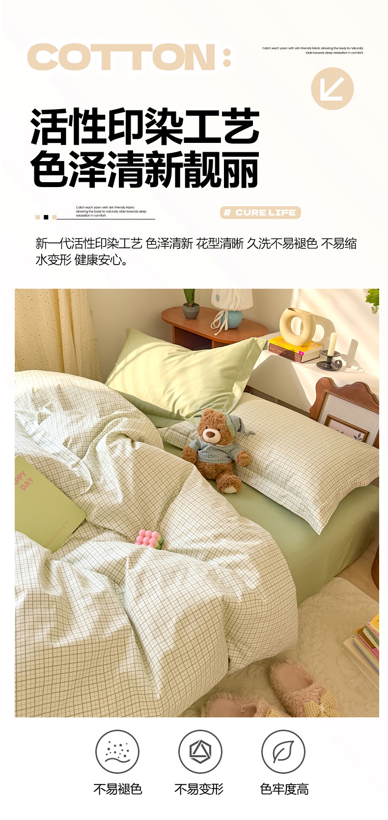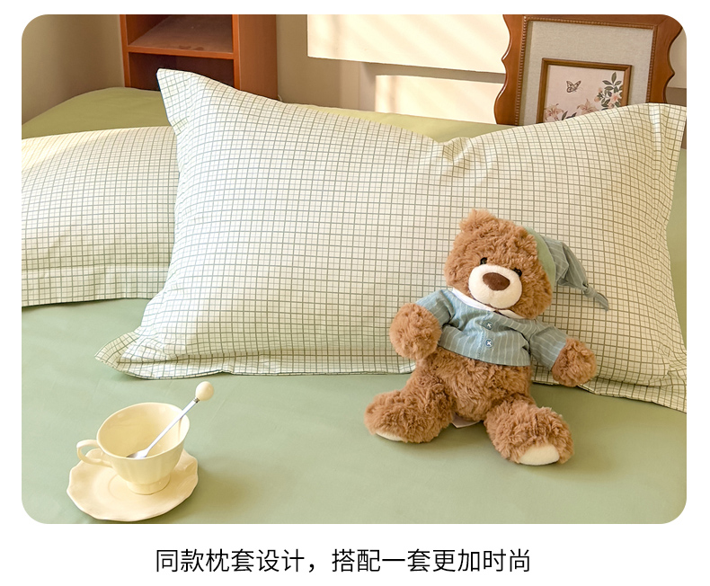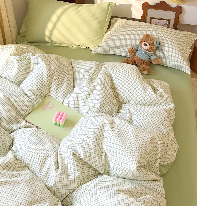 当前位置: 91家纺网 > 商品网购 > 床品套件 > 四件套 > 全棉普通四件套 > DoDo 兜兜 2026年全棉纯棉ins风小清新四件套 青提奶盖-枕套1对格子