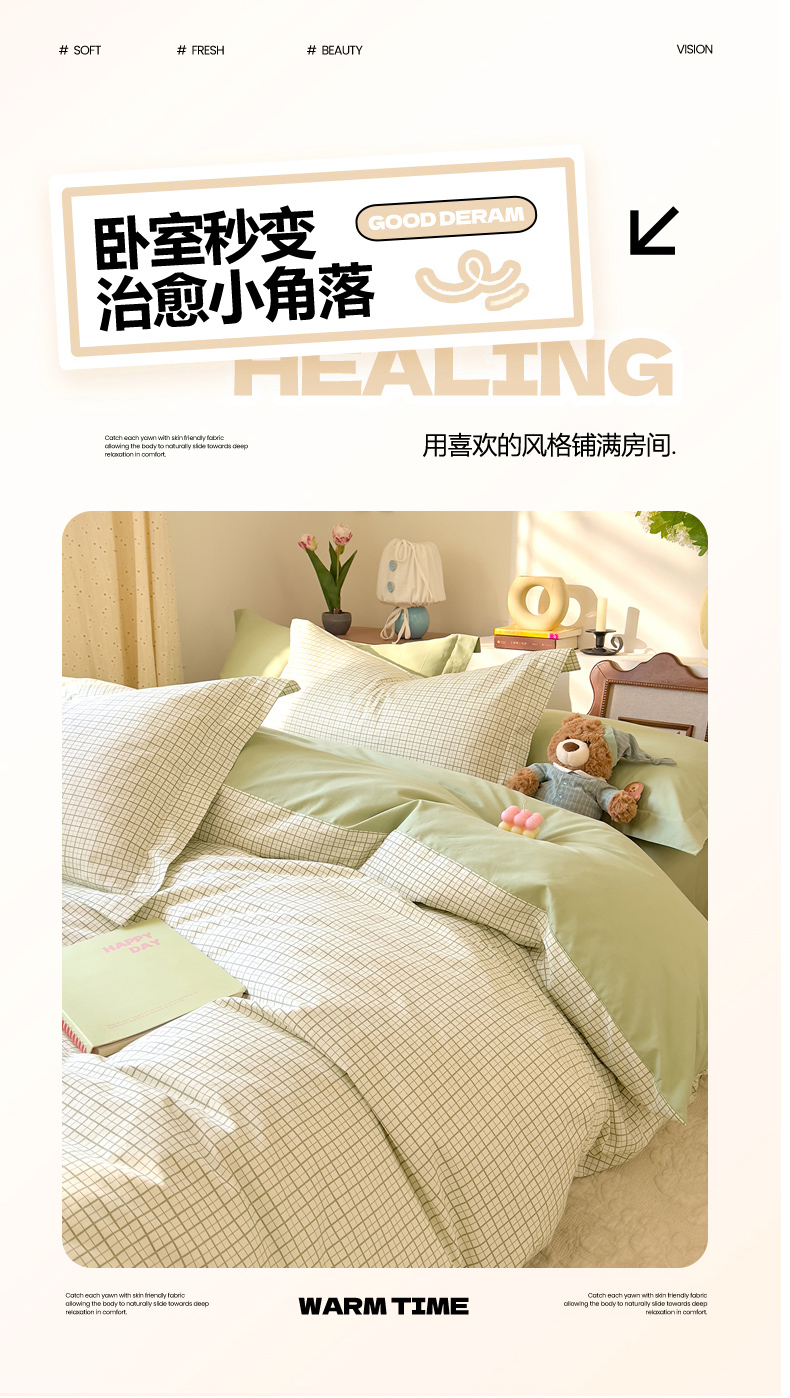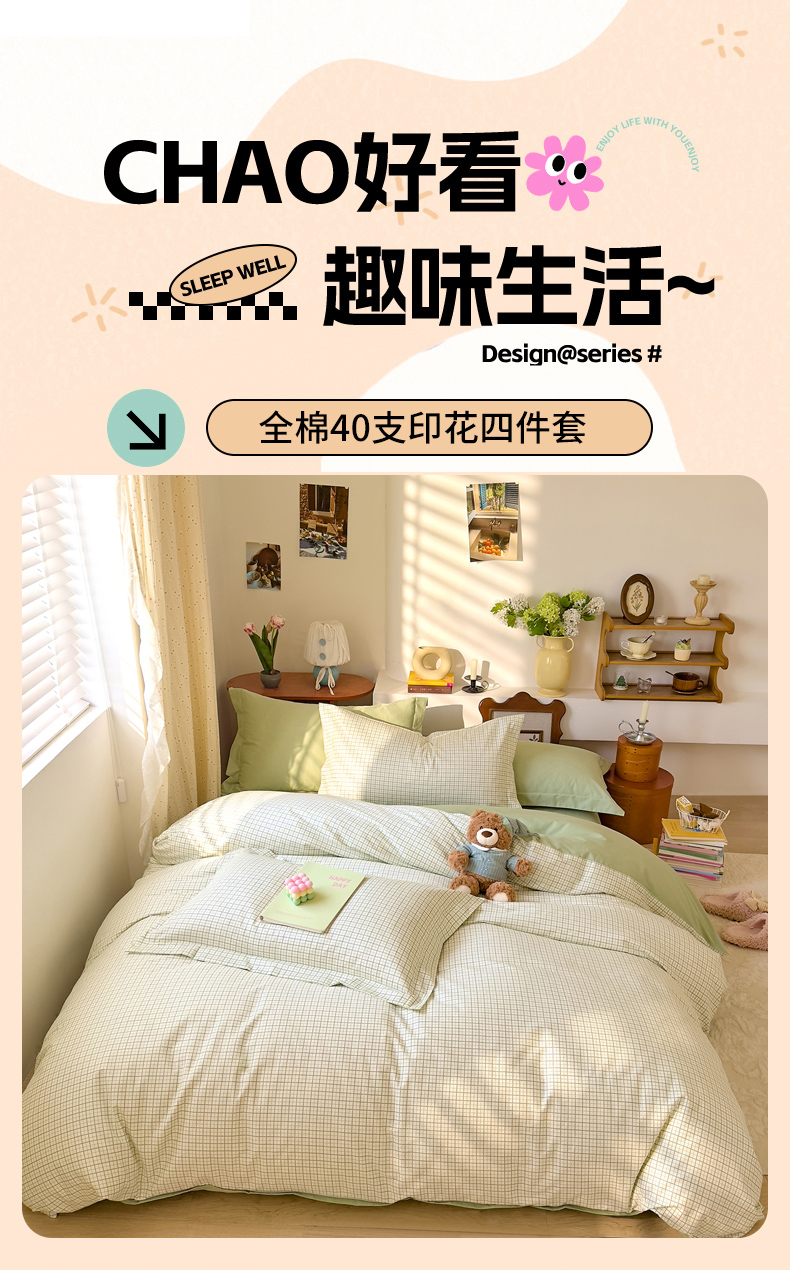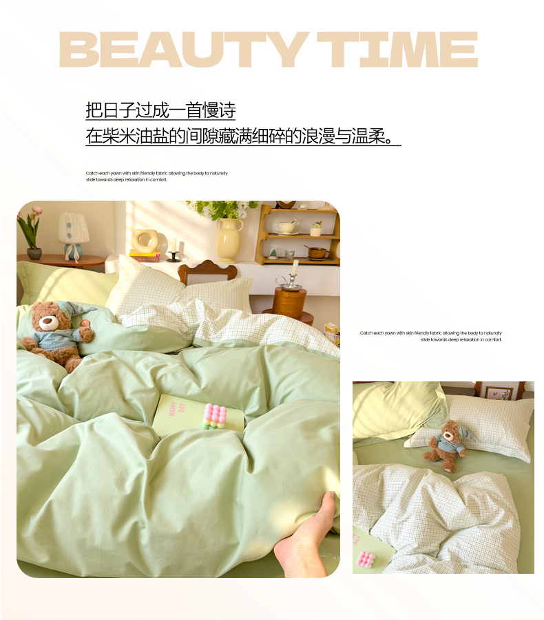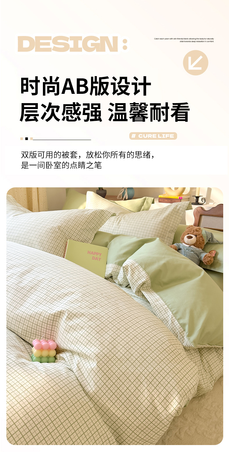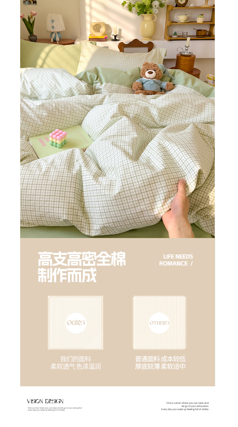 当前位置: 91家纺网 > 商品网购 > 床品套件 > 四件套 > 全棉普通四件套 > DoDo 兜兜 2026年全棉纯棉ins风小清新四件套 青提奶盖-枕套1对格子