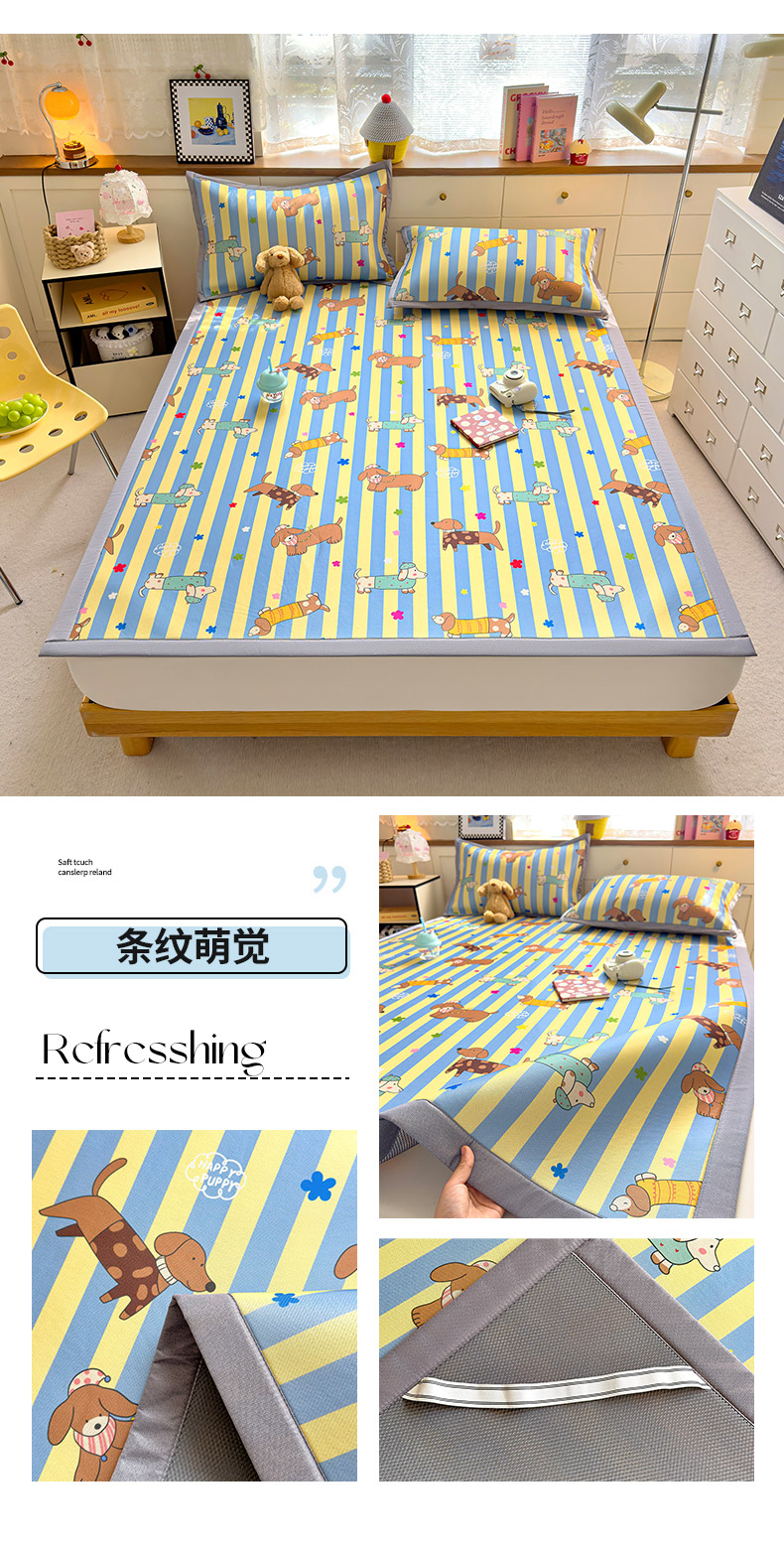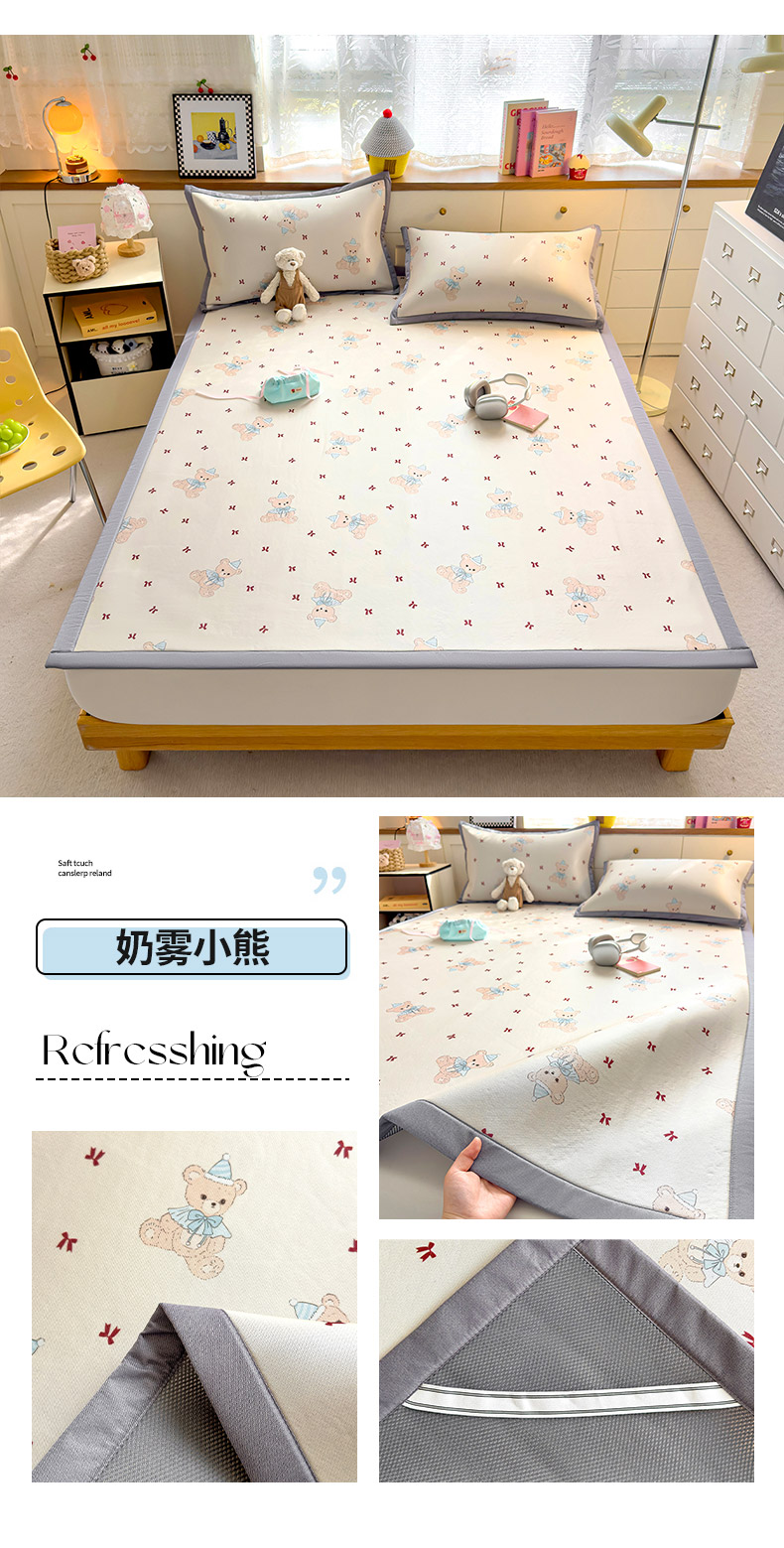 商品名称:(总)圣比熊 2026新款烫光数码印花冰丝凉席