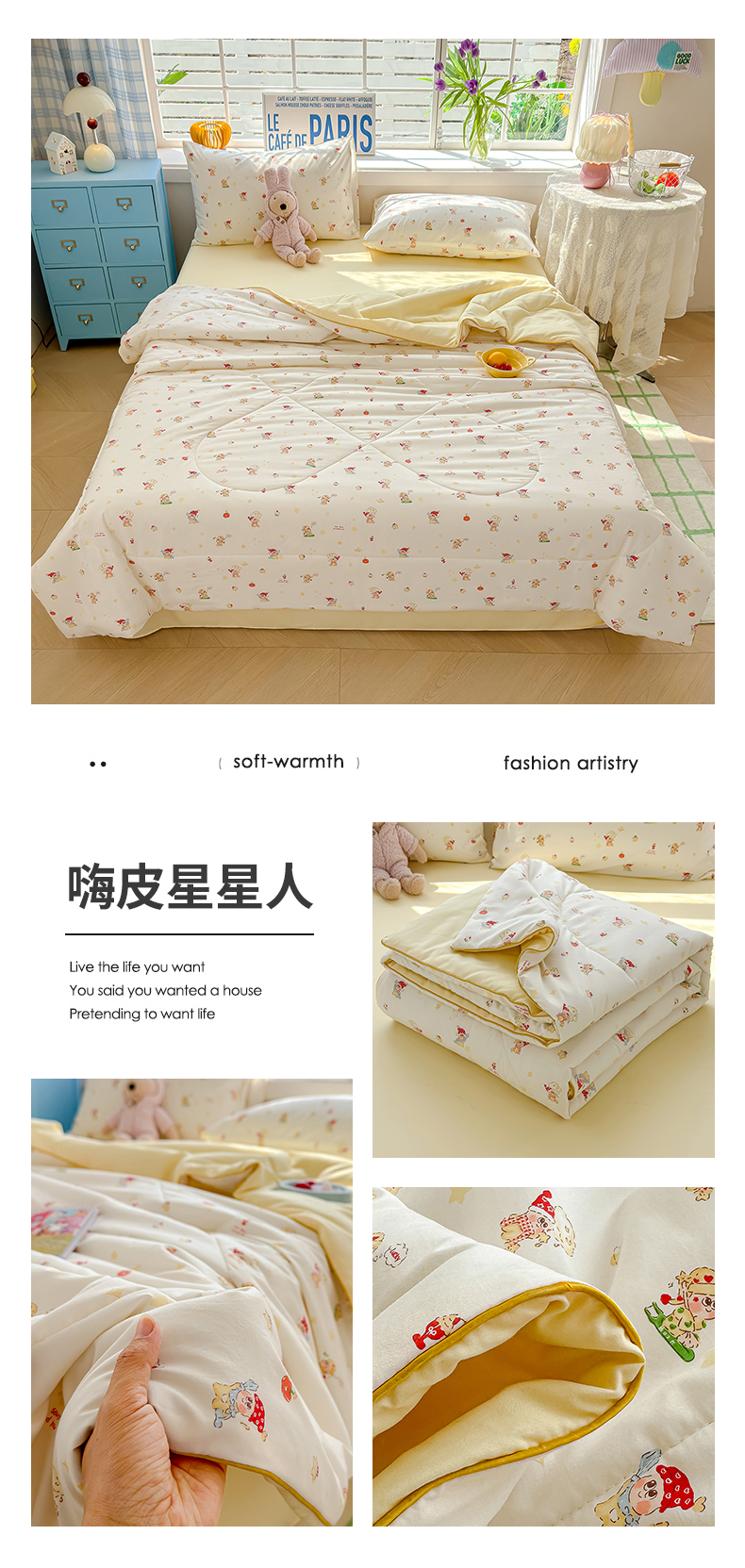 商品名称:美派 2026新款古法水洗云朵棉云感纱夏被夏凉被空调被 嗨皮星星人