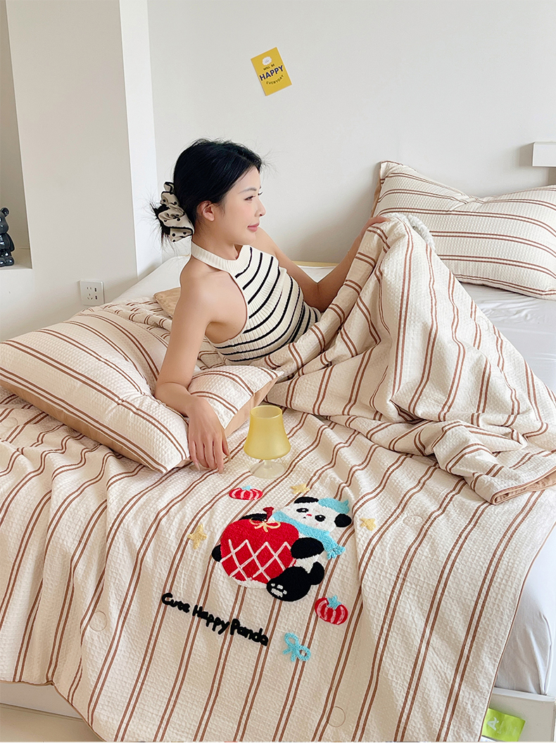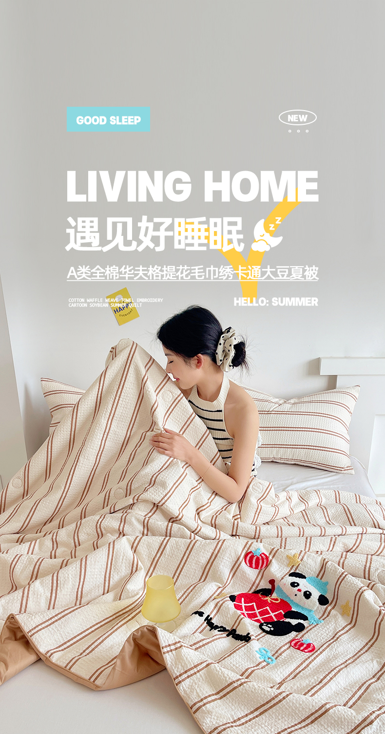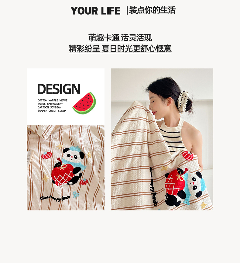 莱宁被业 2026新款A类全棉华夫格提花毛巾绣卡通大豆夏被 苹果小熊